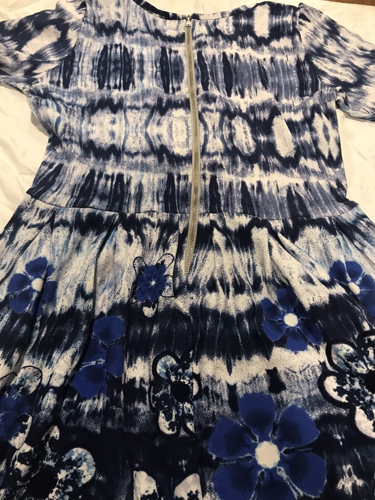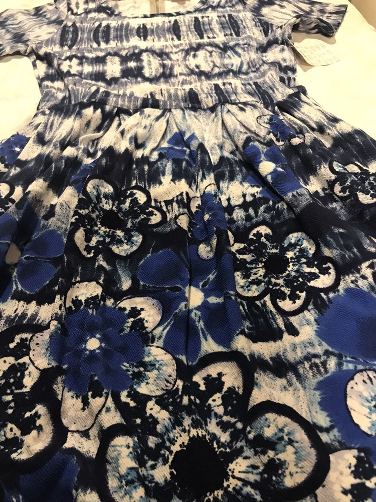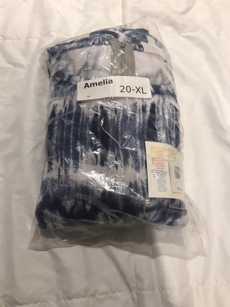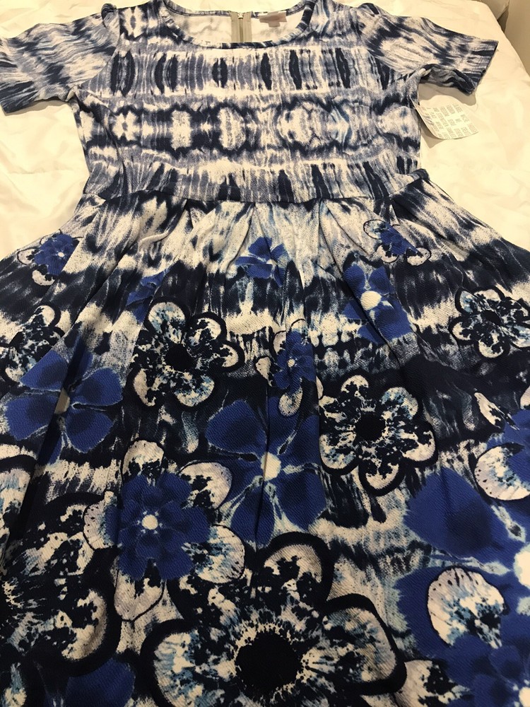 The Amelia dress' stretchy knit fabric is comfortable enough to let you wear the dress all day while having the structure and tailoring that make it sophisticated enough for the office or a fancy night out. The dress features handset box pleats, giving the dress a flowing, full skirt. And before we forget the best part, this dress also has hidden pockets! This dress is everything a girl needs. Major unicorn, rare print! Gorgeous unique print. The Amelia dress' stretchy knit fabric is comfortable enough to let you wear the dress all day while having the structure and tailoring that make it sophisticated enough for the office or a fancy night out. The dress features handset box pleats, giving the dress a flowing, full skirt. Lularoe Amelia beautiful blue and white ombre, tie dye, watercolor, dip design. This is for a size extra large XL 18-20 Unicorn Perfect dress with pockets Gorgeous print Little Flirty Dress Condition is New with tags. Shipped with USPS U 26/34 (3)