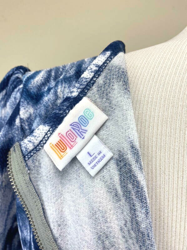 Brand: Lularoe Size: Large Measurements: armpit to armpit = 19" waist = 16" across length = 40" Description: Amelia dress with a blue and white tie dye pattern and a floral 'dipped' hem. Condition: Wash/wear is mild and there are no rips, stains, or any other problems that I can see. 32 INTERNATIONAL BUYERS - Import duties, fees, taxes etc. are not included in the item price or shipping charges. These charges are the buyer's responsibility. If you have questions about these fees please check with your country’s customs office to determine what these additional costs will be prior to bidding/buying.