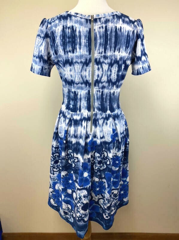 This dress is absolutely stunning! The blue and white tie-dye with floral dipped hem gives it a unique, boho-chic look. It fits comfortably in a large, and the lightweight fabric makes it perfect for summer. The condition is great—no flaws, just soft and ready to wear. Super flattering and versatile, whether dressed up or down. Love it!