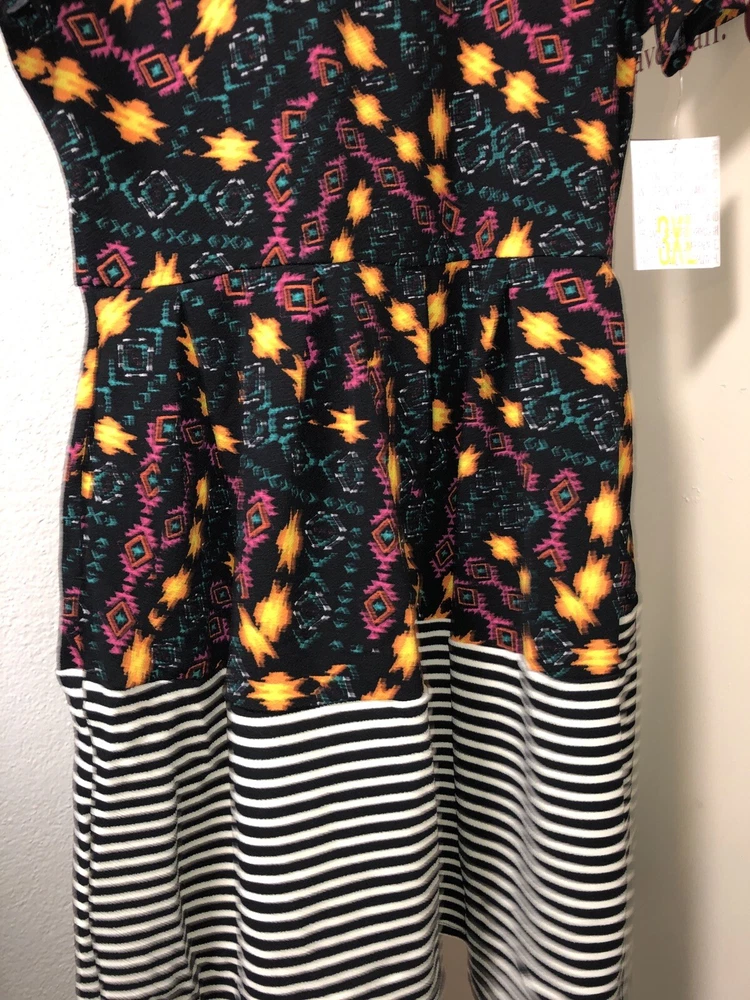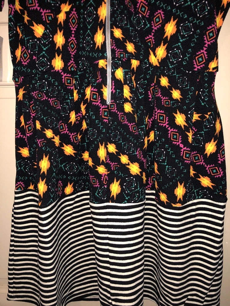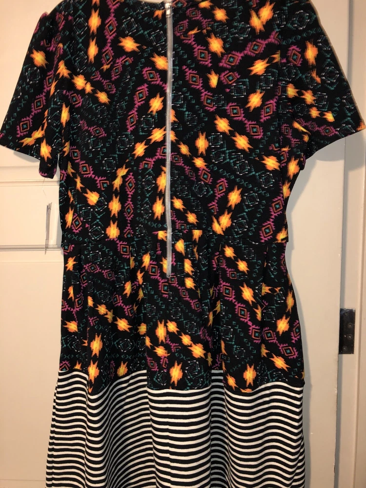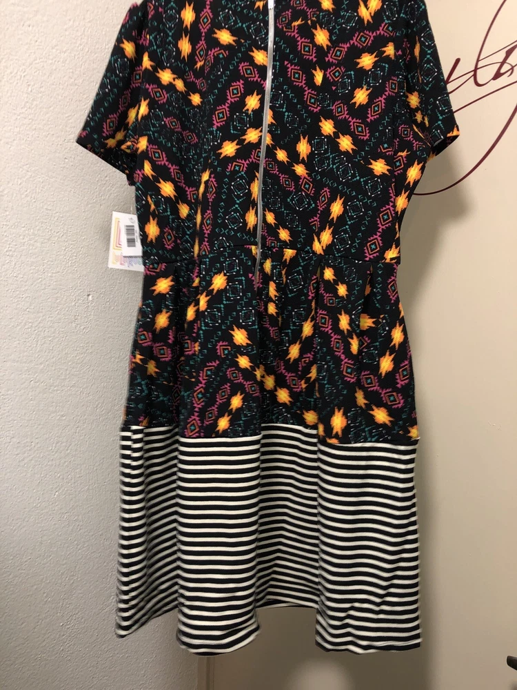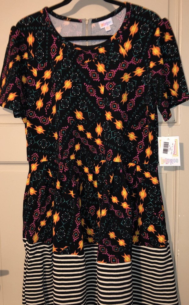 The Amelia dress' stretchy knit fabric is comfortable enough to let you wear the dress all day while having the structure and tailoring that make it sophisticated enough for the office or a fancy night out. The dress features handset box pleats, giving the dress a flowing, full skirt. And before we forget the best part, this dress also has hidden pockets! This dress is everything a girl needs. Lularoe 3XL NWT Women’s Amelia tribal pattern with stripes Beautiful Pleated Dress Condition is New with tags. Shipped with USPS We strive to send out items the same day. Please email with questions, thanks! Hi 820 K