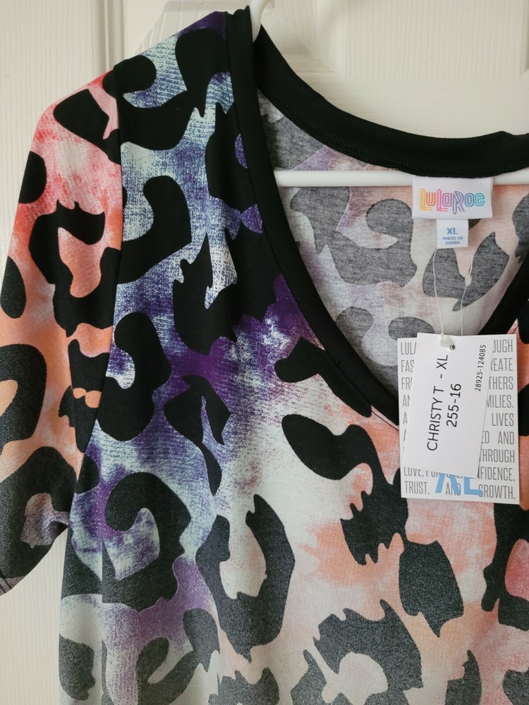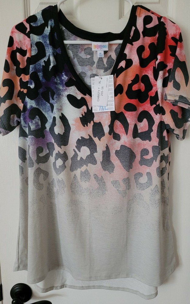 Lularoe Leopard Cheetah XL Christy Colorful Dipped Spray Paint Ombre NEW! *READ* Very hard to find print! Very cool dipped leopard/cheetah print but the bottom almost looks like it was spray painted! Love this piece! New with tags! Please note that this came from the consultant carrying the scent of her home. Best way to describe the scent is it smells like essential oils...maybe Eucalyptus. Please keep that in mind when purchasing if you have allergies or if you are sensitive to smells. FINAL SALE USPS First Class Shipping for $5.25 SAVE $2.00 ON SHIPPING FOR EACH ADDITIONAL LULAROE ITEM PURCHASED IN THE SAME TRANSACTION If you are not familiar with Lularoe sizing please ask questions prior to buying as sizing does vary from style to style and country of manufacturing/different materials can also cause pieces to fit differently. I am happy to send measurements upon request. Preview all pictures as they are part of the description. Due to variations in camera and phone/computer screen settings the colors may not be exactly as they appear on your screen. FINAL SALE. NO RETURNS, REFUNDS OR EXCHANGES