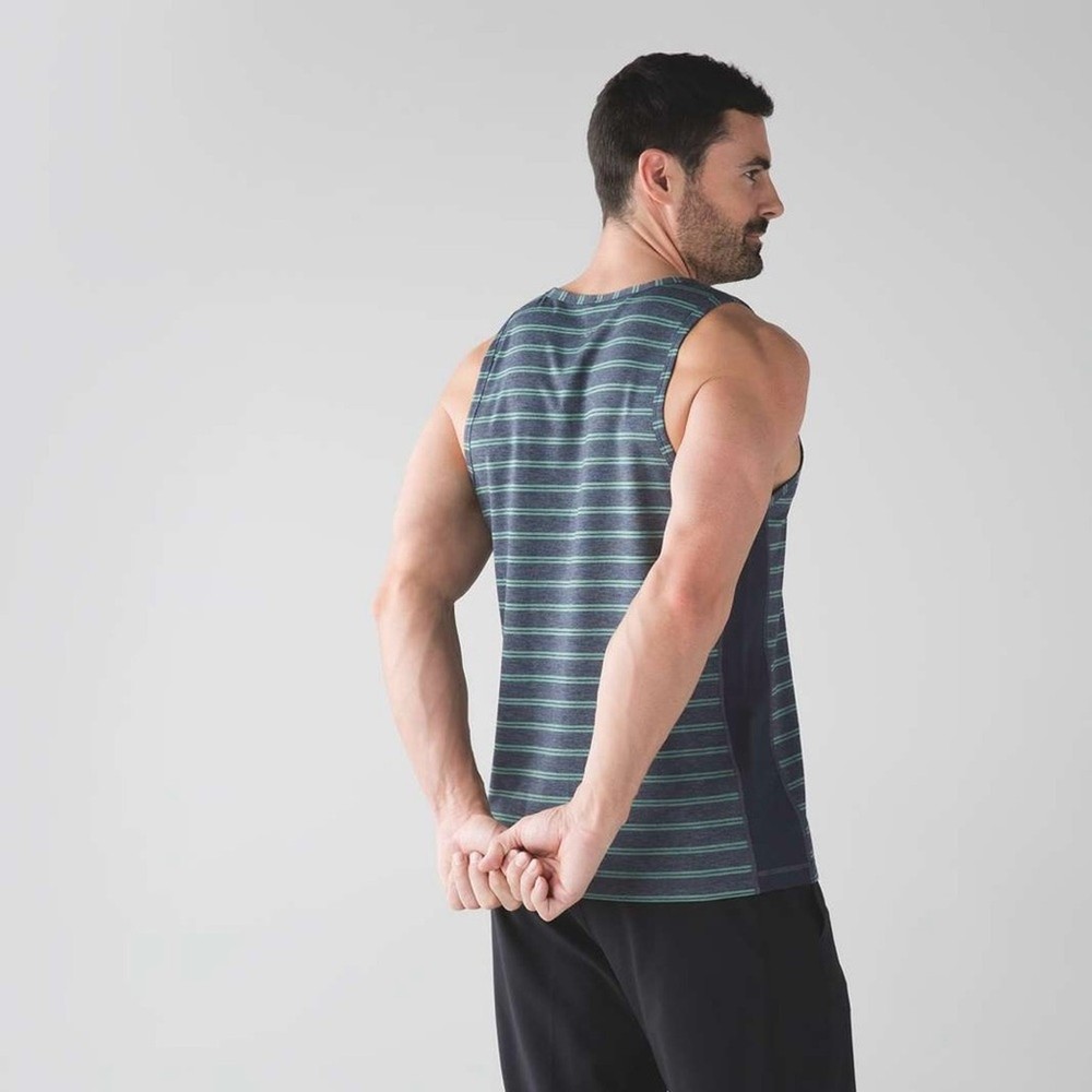 <![CDATA[<div>This tank top features a sleek design with alternating gray and green stripes, perfect for athletic activities. Made from lightweight fabric, it offers a comfortable fit and generous armholes for ease of movement. Ideal for workouts or casual wear, its cool color scheme adds a touch of style to any outfit. Condition: Good pre-owned condition. Logo shows wear. Comes from a smoke-free and pet-free home. **No size tag, but estimated to be about a size XL. Please see measurements below.** Approximate Measurements (Laying Flat): Length: 30 in Chest: 22.5 in Waist: 21 in For seller use: 8oz 2036