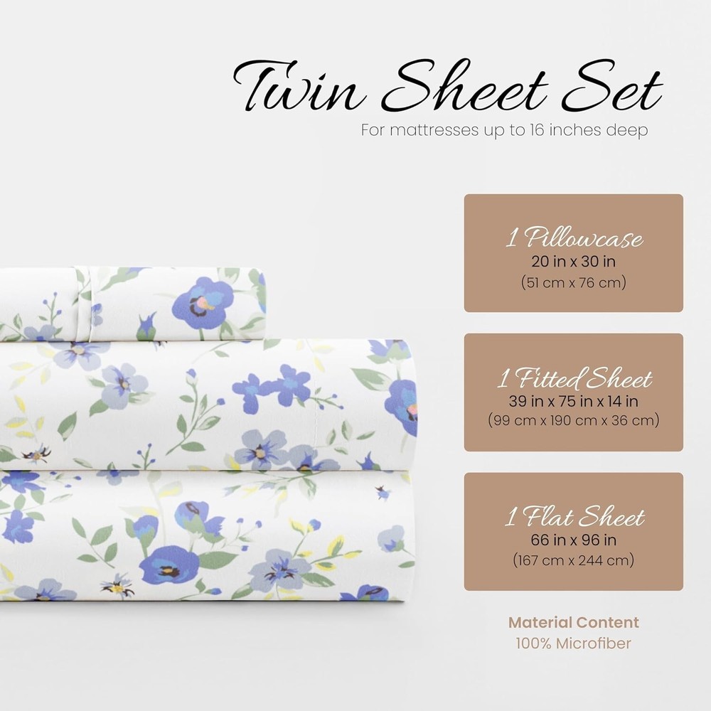 Luxurious Light Blue Floral Twin Sheet Set - Ultra-Soft & Cooling Comfort ‹ › ‹ › ‹ › ‹ › ‹ › ‹ › ‹ › ‹ › ‹ › ‹ › Luxurious Light Blue Floral Twin Sheet Set - Ultra-Soft & Cooling Comfort Experience opulence with every night's sleep wrapped in our luxurious twin sheet set. Crafted from 100% microfiber, these sheets embrace you in cloud-like softness, making them the ideal choice for a serene and restful slumber. Features: Made from 100% premium microfiber for unparalleled softness. Twice-brushed fabric for extra comfort compared to standard sheets. Deep pocket fitted sheets designed to accommodate beds with depth up to 16 inches. Includes a fitted sheet, flat sheet, and one elegant pillowcase. Durably crafted with expert stitching to withstand wear and tear. Unique Blossoms print adds a touch of sophistication to your bedroom. Available in 19 beautiful color options across all 5 standard sizes. Benefits: Indulge in a sleep experience that feels like pure luxury. Effortless sheet changes with snug-fit design takes the hassle out of making your bed. Durable fabric handles the bumps of family life, making it perfect for homes with kids and pets. Transform your bedroom aesthetic with a burst of color and beautiful floral patterns. Why choose our Luxurious Twin Sheet Set? Transform your sleep sanctuary with a touch of elegance and unmatched comfort. Our Luxurious Light Blue Floral Twin Sheet Set is more than just bedding; it’s an invitation to indulge in restful nights and rejuvenating mornings. With a twice-brushed microfiber finish, deep pockets for effortless fitting, and a stunning floral design, this set not only enhances your sleeping experience but also elevates the beauty of your bedroom. Invest in luxury and durability—choose our Luxurious Twin Sheet Set today and experience the perfect blend of beauty, comfort, and longevity! Shipping Free & Fast Shipping - We offer free shipping to most of the USA with a normal delivery time of 3-7 days. However, due to the current situation, additional delivery time (up to 3 weeks) may be required for some items. Alternative Carriers - We may use alternative carriers (e.g. USPS, FedEx, UPS, etc.) to ensure your package arrives safely and on time. Due to the use of multiple carriers, we are unable to provide a tracking number automatically. Handling Time - Orders are processed and shipped within 1-2 business days of receiving cleared payment. Shipping Restrictions - Shipping to Alaska, Hawaii, Puerto Rico, Guam, and other US territories may incur shipping charges or delivery restrictions. Please contact us before ordering, or your order can be refunded/cancelled. State Restrictions - There may be restrictions based on your state of purchase. For example, certain items may not be shipped to California due to state regulations. Contact for Tracking Updates - If you require tracking updates or have any concerns about the delivery of your order, please feel free to contact us, and we will be happy to assist you. Return 30-Day Hassle-Free Returns - We want you to be completely satisfied with your purchase. If you are not, you can return the item within 30 days of receiving it for a full refund or exchange. Easy Return Process - To start a return, simply contact us and we will provide you with a prepaid return shipping label and detailed instructions. Restocking Fee - There are no restocking fees for returns. However, the buyer is responsible for return shipping costs if the return is not due to a seller's error. Refund Processing Time - Refunds will be processed within 5 business days of receiving the returned item in its original condition. Payment We accept all major credit cards, PayPal, and Apple Pay for your convenience. Your payment information is secure and encrypted to ensure a safe and seamless transaction. Please complete your payment within 3 days of purchase to avoid any delays in shipping. Feedback Your feedback is extremely important to us. We strive to provide the best products and customer service possible. If you are satisfied with your purchase, please take a moment to leave us a positive review. If you have any concerns or issues with your order, please contact us before leaving negative feedback. We are committed to resolving any problems and ensuring your satisfaction. Contact Us If you have any questions or concerns, please feel free to reach out to our customer support team. You can contact us through the eBay messaging system. We are available Monday to Friday, 9:00 am to 5:00 pm EST, and we will do our best to respond to your inquiry within 24 hours. Buy it now and enjoy a pleasant shopping experience! UPC: Not Set Item Length: Twin Size Bed Sheets Item Width: Twin Size Bed Sheets Unit Quantity: 1.0 count Material: Microfiber Character: Not Set Theme: Luxury Care Instructions: Machine Wash Features: Cooling,Deep Pocket,Wrinkle Resistant Department: Adults Room: Bedroom Labels & Certifications: Not Set Brand: Unbranded Size: Twin Type: Sheet Set Color: Light Blue Pattern: Floral Character Family: Not Set MPN: Not Set Country/Region of Manufacture: Not Set Thread Count: 20000 Style: Patterned Shape: Rectangular Model: Not Set GSM (Grams per Square Meter): Below 150 Product Line: Not Set Unit Type: Unit