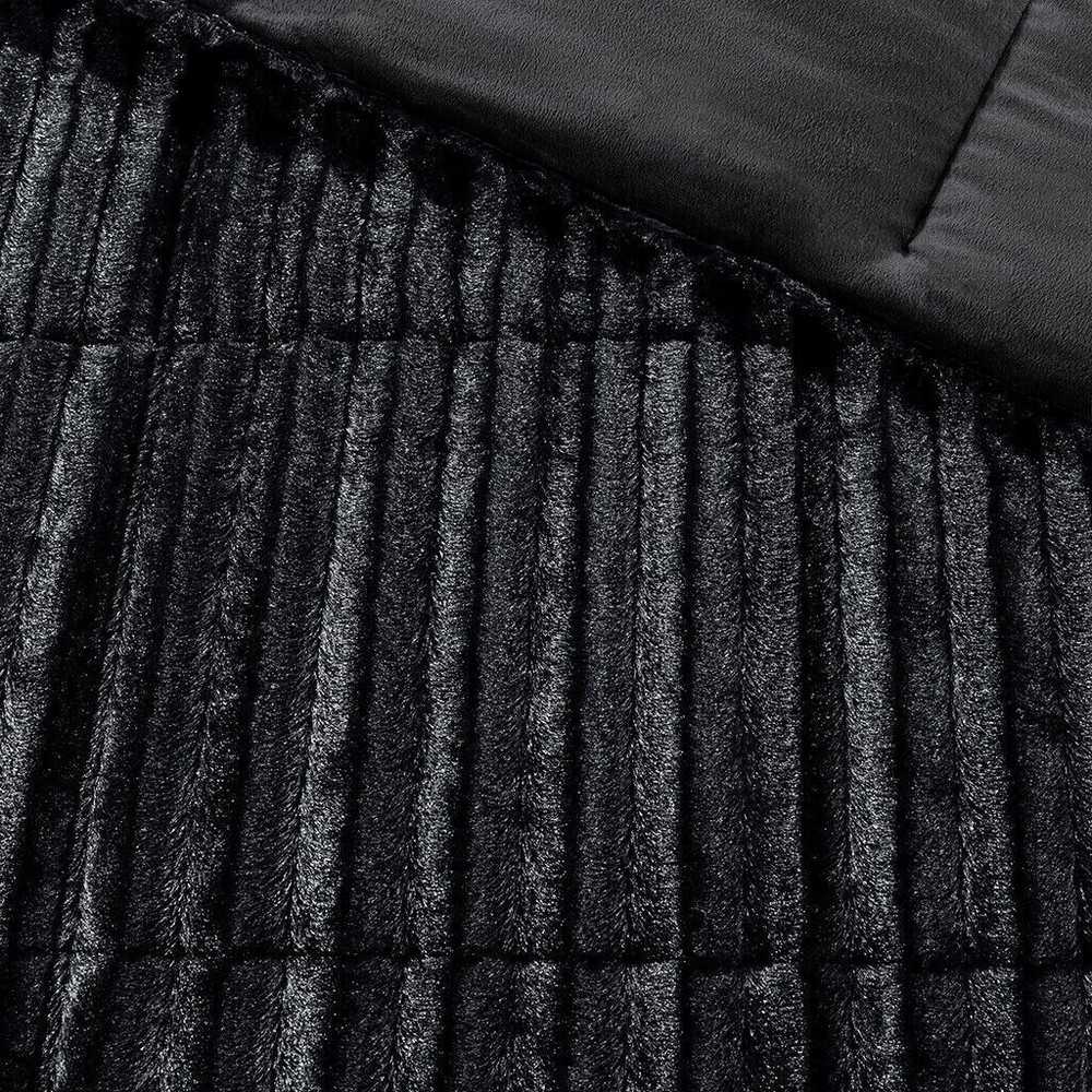 Add glamor and style to your home with the Madison Park Duke Black faux fur comforter set. Made from a super soft faux fur, the comforter provides supreme warmth and comfort. The set includes 2 shams. Full/Queen 1 Comforter 90x90" 2 Standard Shams 20x26+2"(2)