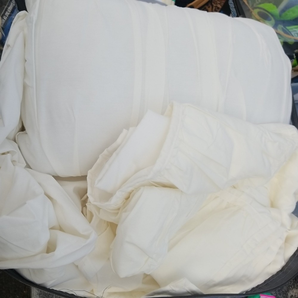 Luxury 4pc White Ruched Pleated Duvet Cover Bedding Set AND Decorative Pillow. Size Full/queen Used once if you have any question let me know!...