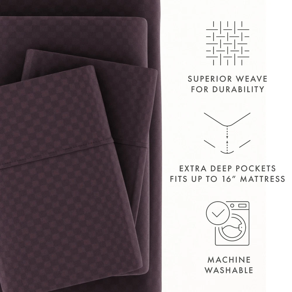 Luxury Soft Embossed 4PC Sheets Set by Kaycie Gray So Soft Collection Introducing a new lineup of luxury sheets, comforters and everything you need for your bed. Every product is made of the finest, most durable materials, while being machine washable. We are dedicated to providing products and services that provide you with ultimate luxury, comfort, and high-end finishes. We take pride in the level of care we put into each and every one of our products. For us less is never more; we use only top quality materials to ensure that your new bedding collection will last a lifetime. Our goal is to provide you with the best possible experience when it comes to buying luxury bedding. Features The Hotel Collection Embossed 4-Piece sheet set is designed with your comfort in mind. Add a designer accent to your bedroom decor with this timeless checkered pattern artistically created to be a wonderful addition to any bedroom. Made of the finest imported double-brushed microfiber yarns creating a new standard in softness and breathability, this 4-piece sheet set will make it incredibly hard to get out of bed in the morning. Our premium yarns are two times more durable than cotton, completely wrinkle free, and perfect for all seasons. Material: Double-brushed microfiber for outstanding comfort. Superior Weave for durability and buttery-soft touch. Made of ultra-soft and breathable 90 GSM microfiber. Easy Care: Machine wash cold, Tumble dry low, Fade Resistant, Wrinkle Free, No Ironing Necessary. Package Includes: 4 piece set includes 1 Flat Sheet, 1 Fitted Sheet, and 2 Pillowcases (Twin sets come with 1 Pillowcase) . What is included / Dimensions 1 Twin Fitted Sheet: 39’’W x 75’’ L +16 1 Twin Flat Sheet: 66’’W x 96’’L 1 Standard Pillowcase: 20’’W x 30’’ L 1 Full Fitted Sheet: 54" W x 75" L + 16" 1 Full Flat Sheet: 81" W x 96" L 2 Standard Pillowcases: 20’’W x 30’’ L 1 Queen Fitted Sheet: 60" W x 80" L + 16" 1 Queen Flat Sheet: 90" W x 102" L 2 Standard Pillowcases: 20’’W x 30’’ L 1 King Fitted Sheet: 78" W x 80" L + 16" 1 King Flat Sheet: 102" W x 108" L 2 King Pillowcases: 20’’W x 40’’ L 1 Calking Fitted Sheet: 72" W x 84" L + 16" 1 Calking Flat Sheet: 105" W x 102" L 2 King Pillowcase: 20’’W x 40’’ L Contact us We can be contacted at any time through eBay messages if you have any questions, comments or product requests. We will respond to you within 24 hours and do our best to help you out! We encourage our customers to contact us with any questions or concerns! We'd like to be sure you are completely satisfied with your purchase. Returns ienjoy Home offers a 30-day money-back guarantee on all items. Free return shipping. If you need to return an item for a refund, please contact us within the return period. All ienjoy Home sales include our 30-day money-back guarantee. Items may have additional warranty coverage. To determine if your purchase is covered by our manufacturer warranty, please contact us for further assistance. Shipping All orders ship within 1 business day. Standard shipping is FREE on all items shipped within the United States. For express and international shipping, please contact us for further assistance. (Unfortunately we do not ship to Alaska or Hawaii). Please keep in mind, if placed over the weekend your order will ship out the following business day. When your order ships, you will be emailed tracking information. International shipping is handled by eBay's Global Shipping program. For more information please contact eBay directly. Recomended Items from Kaycie Gray store Comforter Kaycie Gray Hotel Collection Luxury Hypoallergenic Comforter $25.99 Luxury Sheets Rayon From Bamboo Luxury 4PC Soft Sheets Set by Kaycie Gray Hotel Collection $44.99 Solid Sheets Luxury 4PC Sheets Set Comfort by Kaycie Gray Hotel Collection $16.99 Comforter set Kaycie Gray Fashion Ultra Soft Desert Stripe 3PC Reversible Duvet Cover $17.99 Visit our store for more products Kaycie Gray by iEnjoy Home .