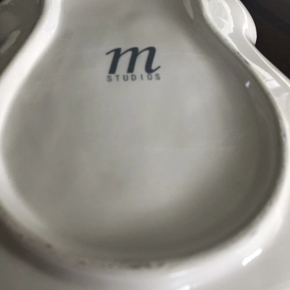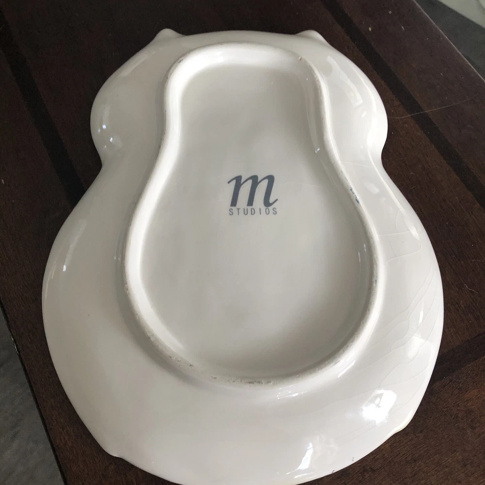 M Studios 8” Black Green Owl Shaped Raised Textured Plate. Very good condition except for time paint chip on top tip see picture Embossed raised features eyes been wings 8” x 6”...