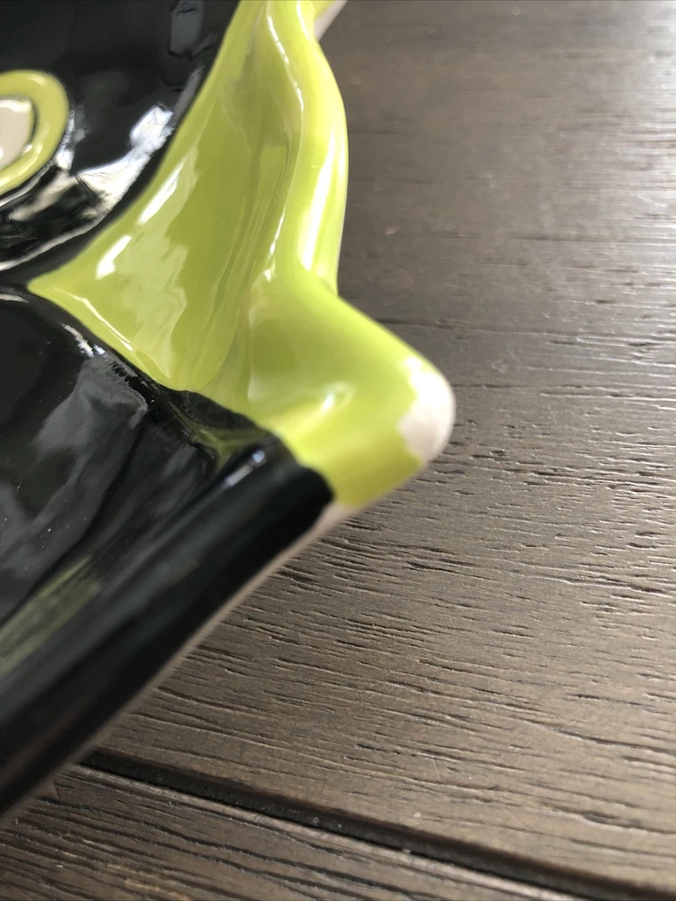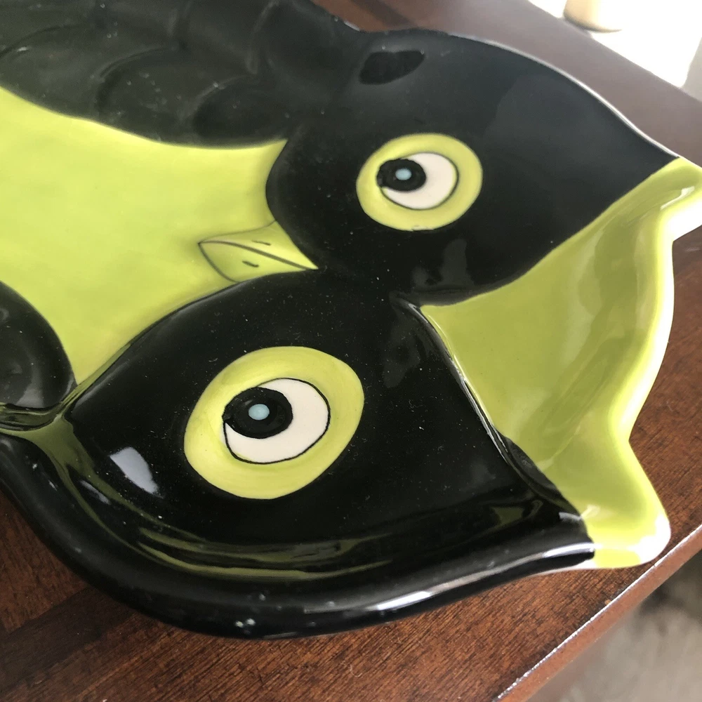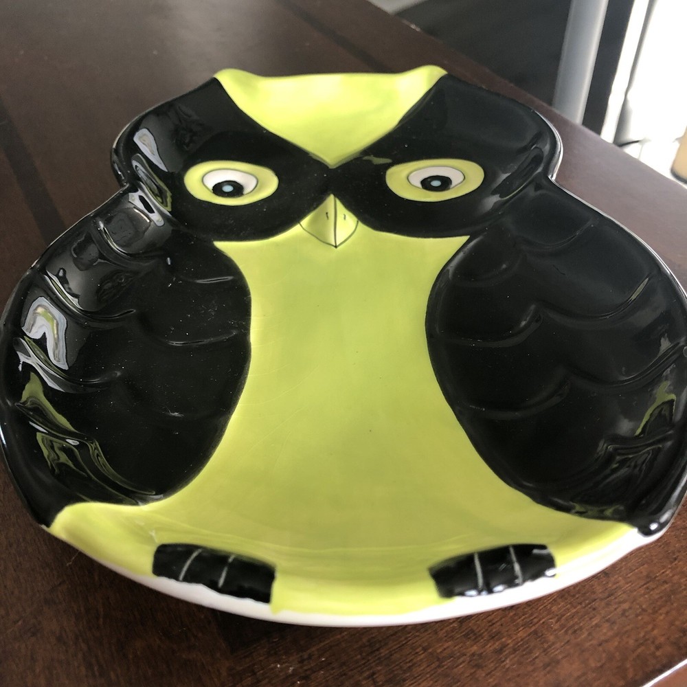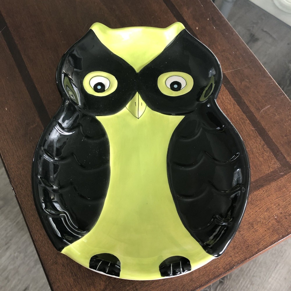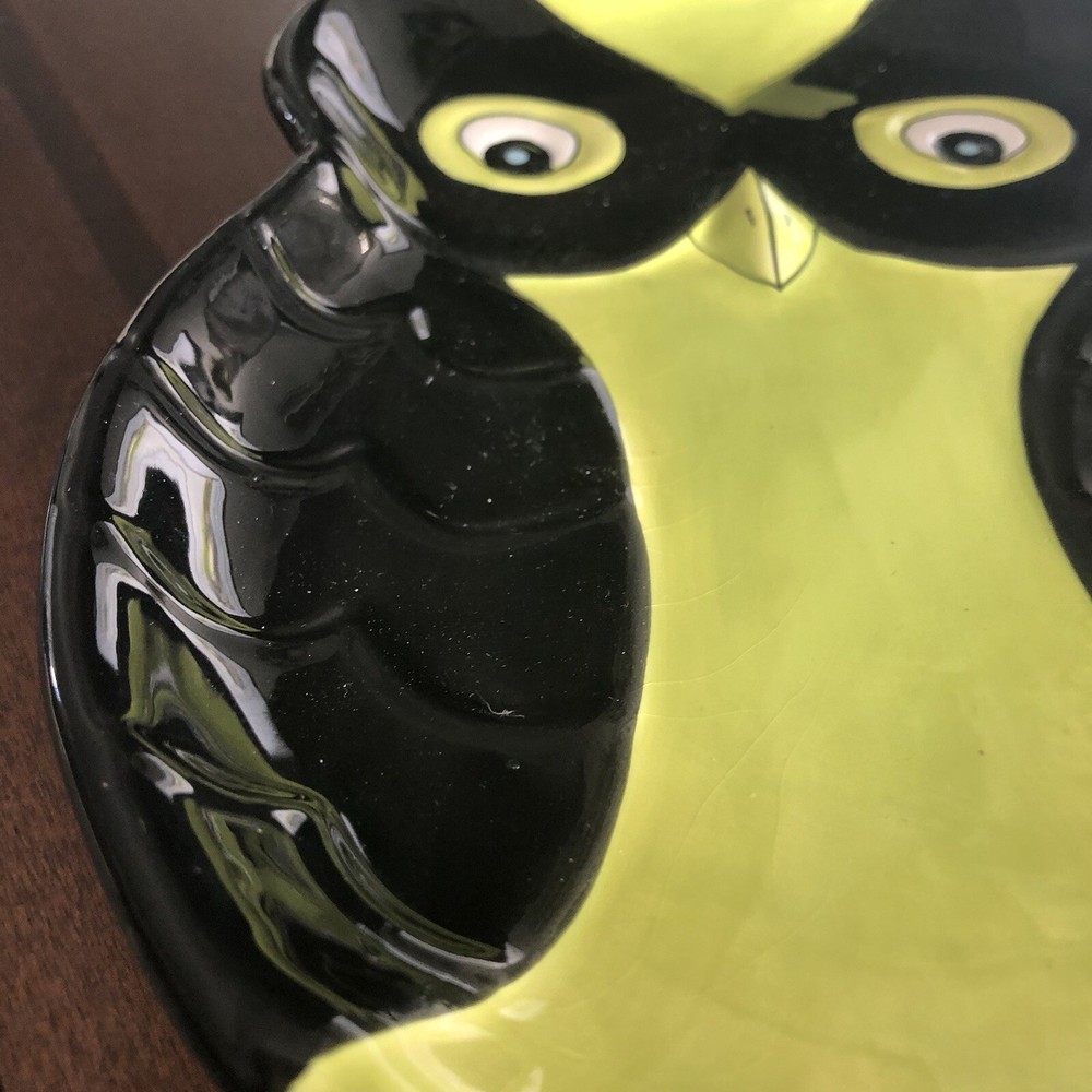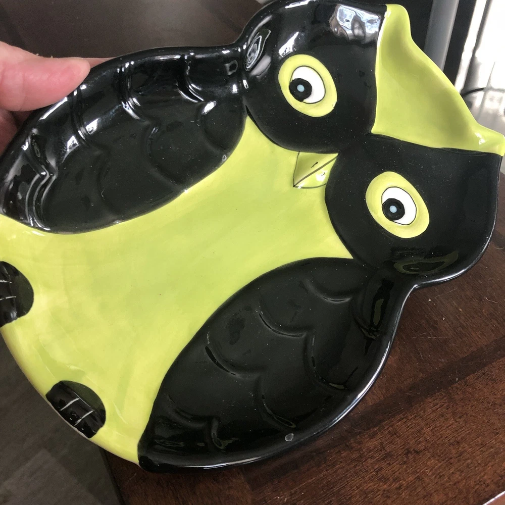 This owl-shaped plate is such a fun and unique piece! The black and green textured design really makes the embossed details pop, especially the eyes and wings. It’s in great condition, with just a tiny paint chip that doesn’t take away from its charm. Perfect for adding whimsy to any table setting or display!