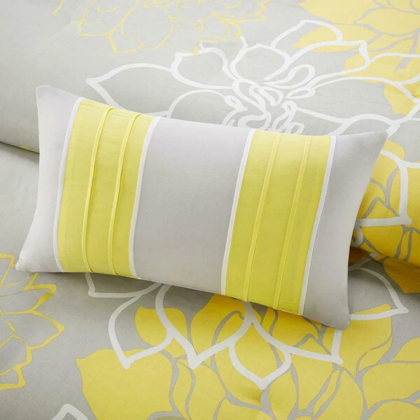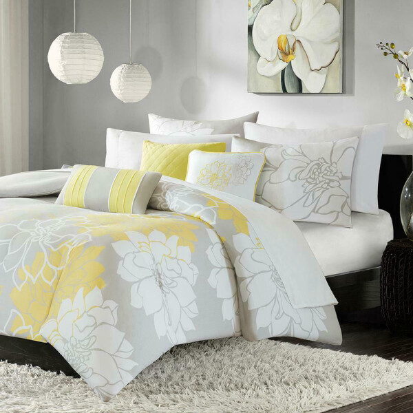 Madison Park - Madison Park DUVET SET Color: Multicolor Retail: Description MADISON PARK 6pc Yellow Grey Reversible Cotton Duvet Cover SET NEW IN PACKAGE Lola is the perfect solution to an updated, modern print look. This duvet collection features an overscaled floral print design printed on 100% cotton fabric for a super soft hand feel. The reverse of the duvet is a soft white color that coordinates with the grey, white and yellow from the face of the duvet. The decorative pillows feature embroidery and piecing details. A duvet cover is a protective cover for your comforter, most likely for your down comforter. Sometimes it’s referred to as a comforter cover. Duvet covers are not filled. It has an opening where you can insert your comforter. Filler not included. Full/Queen 1 Duvet Cover 90x90" 2 Standard Shams 20x26" (2) 3 Decorative Pillows 18x18"/16x16"/12x18" Materials: Microfiber Shipping to Hawaii, Puerto Rico and Alaska is not free.