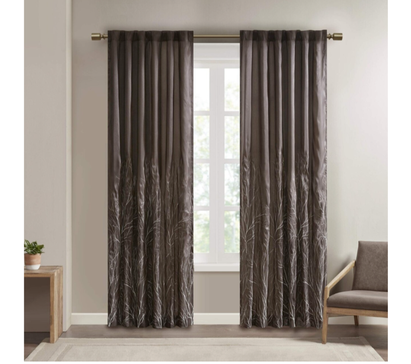 About this item: Design - A Striking Tree Branch Design Is Embroidered On Beautiful Faux Silk, Creating Alluring Contrast And Dimension, Combines Style And Nature In The Best Way Feature - Added Lining For More Privacy And Better Drapability, while The Luxurious Sheen Provides A Touch Of Sophistication To Your Décor Included - 1 Window panel:50"W x 84"L MEASUREMENT - 1 Window Panel: 50"W x 84"L - Need to purchase 2 curtain panels for each window for standard coverage.