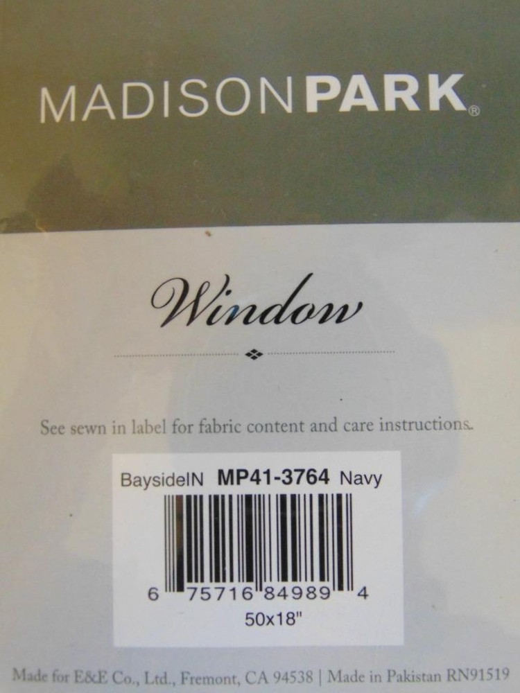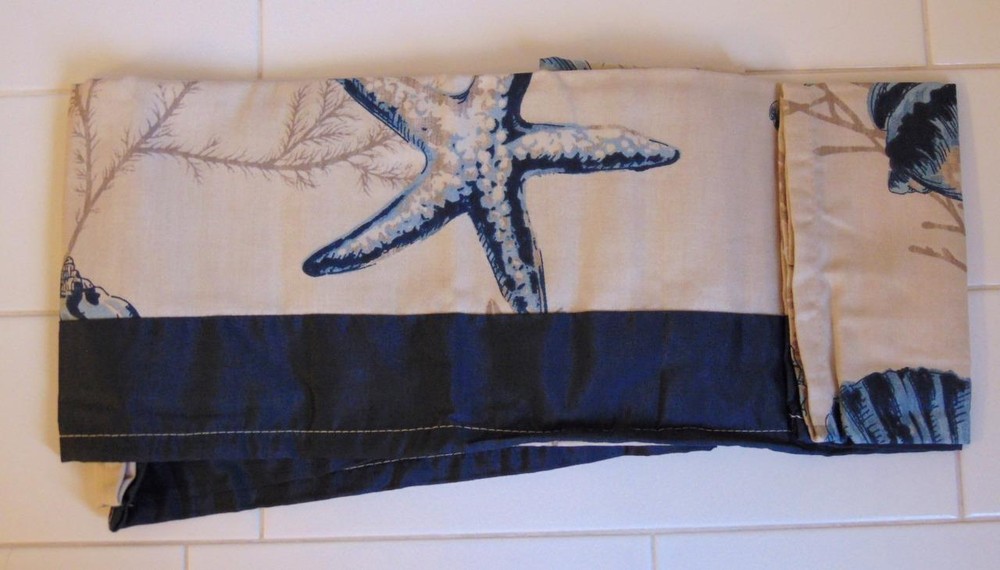 MADISON PARK BAYSIDE NAVY 50" X 18" ROD POCKET VALANCE - NEW IN PACKAGE MADISON PARK BAYSIDE NAVY 50" X 18" ROD POCKET VALANCE - NEW IN PACKAGE Click images to enlarge Description A 50" x 18" valance by Madison Park in its Bayside Navy pattern, which features assorted sea shells, motifs and coral. The shells and motifs are done in various blue hues, the coral is dark taupe. The background is ivory with a solid navy border along the bottom. The valance is 50" wide and 18" long with a rod pocket top that fits up to a 1.25" diameter rod. Made of 100% cotton it is machine washable in cold water on the delicate cycle and can be tumbled dry on low. It is new in its original package. I have five of these available (one was opened for photographs) and will gladly combine shipping costs for multiple items. A pretty, beach-themed valance! Thanks for stopping by. Payment I accept PayPal payments. Payment is requested within 7 days of auction closing. Shipping I ship USPS, UPS or FedEx - whichever is least expensive. Item/s will ship within 1 business day of receipt of cleared payment. At this time, I ship within the continental United States and to Canada. I will happily combine shipping on multiple orders placed within a one week period and paid for at one time. Most of the items I sell are fragile so shipping insurance is included as a shipping and handling fee in the price of the item/s. I do not charge any other handling fees. Terms of Sale Returns will be considered only if the item you receive has been grossly misrepresented. No returns will be accepted for buyer's remorse. If return is necessary, it must occur within 30 days of receipt of item. Return shipping to be paid by buyer and refund will be issued upon my receipt of item in same condition as when it was sent. About Us The majority of my items come from yard sales, thrift stores, estate sales and auctions. I am not an expert, but diligently research my items and describe them to the best of my ability. Please feel free to contact me with any questions you may have before placing a bid. Contact Us I can be contacted via my eBay email address. I check it several times daily, so you will receive a prompt reply. Images sell! Get Supersized Images & Free Image Hosting Create your brand with Auctiva's Customizable Templates. Attention Sellers - Get Templates Image Hosting, Scheduling at Auctiva.com. Track Page Views With Auctiva's Counter