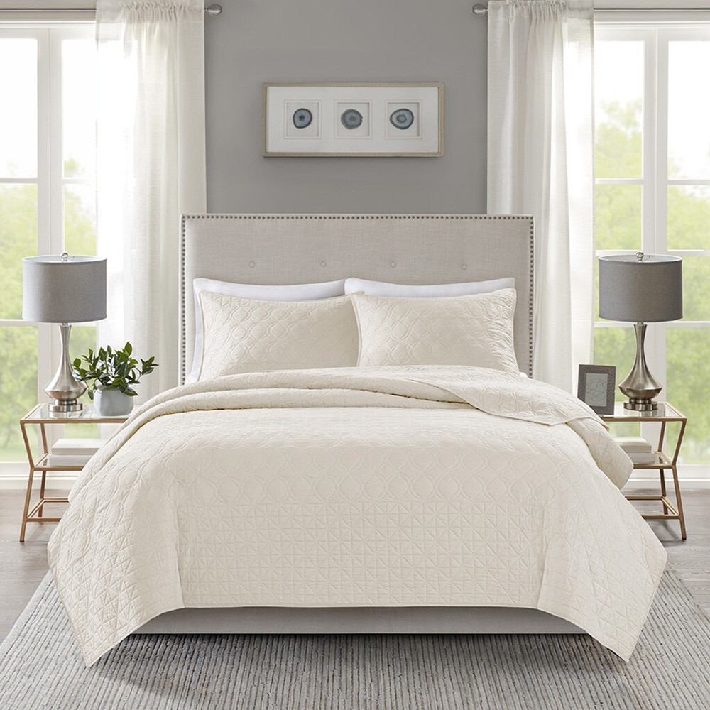 Madison Park - Madison Park COVERLET SET Color: CREAM Retail: 232 Description MADISON PARK CAL KING THREE PIECE COVERLET SET COLOR CREAM NEW IN PACKAGE Materials: 100% Cotton Shipping to Hawaii, Puerto Rico and Alaska is not free. We offer a 30 days refund policy only if the items sold are found to be incorrectly described. We are not responsible for pictures showing incorrectly on your monitor. The refunds will only be made if the following return guidelines are followed: The item must be returned in all the original packaging, including cartons, boxes and must not have been cleaned or laundered. All returns must be boxed and packed securely for shipping. Refunds are within 30 days from the day the customer received the original item. We will send you a prepaid label to send the item back. If the item is found to be as described you will receive a refund of your winning bid minus shipping both ways and a 20% restocking fee. We may except returns that do not qualify under our return policy. These returns will only be accepted at our discretion and a restocking fee may apply. Refund will be made within 5 days of getting the item back.