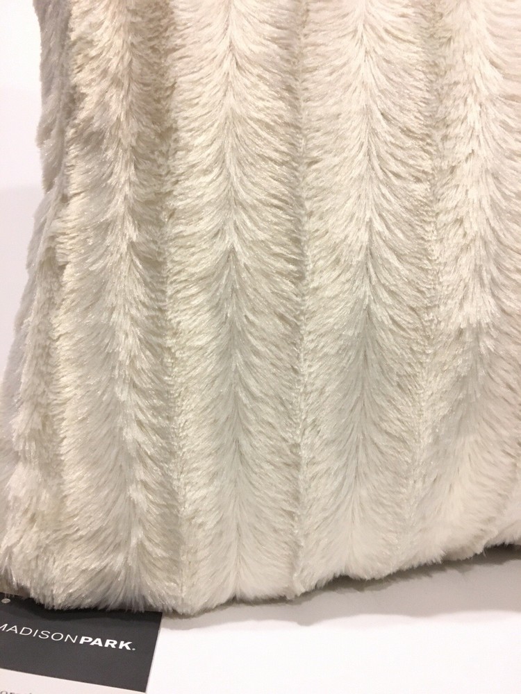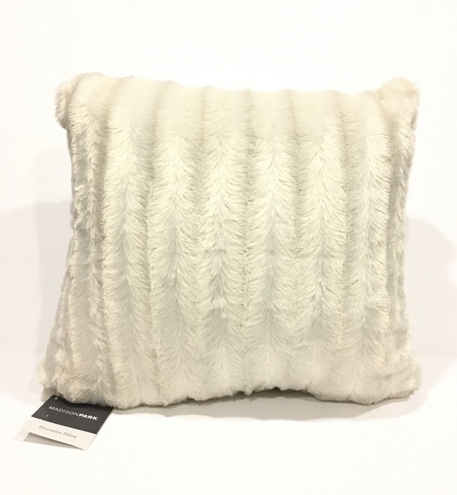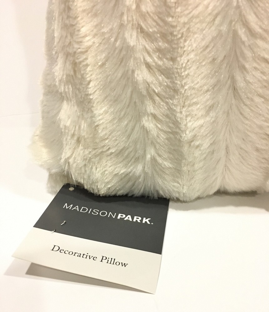 MADISON PARK DUKE FAUX FUR PILLOW -IVORY WHITE -NEW WITH TAGS D ETAILS : Indulge in luxury and comfort with this solid faux fur square pillow. Made from an ultra soft plush fabric, this square pillow is a perfect accent piece for your bedroom or living room. -Modern/Contemporary Life Style -Face: 100% Poly Brushed Long Fur, 300Gsm; -Reverse: 100% Poly Lux Micro Fur, 180Gsm; -Filling: 100% Polyester -1 Pillow:20x20" #33