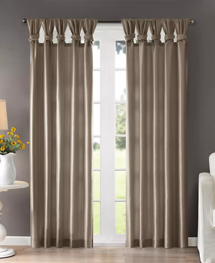 Maximize and room's style and privacy with the shimmering faux silk and lined design of this Emilia twisted tab window panel from Madison Park. Dimensions: 50" x 95" Twist tab header Fits rods up to 2" diameter Lined for enhanced privacy and a better drape Fake-silk fabric NOTE: photo displays two panels for a finished look, but this item contains only 1 panel. Each panel is sold individually Fake-silk fabric and lining: polyester Machine washable Imported