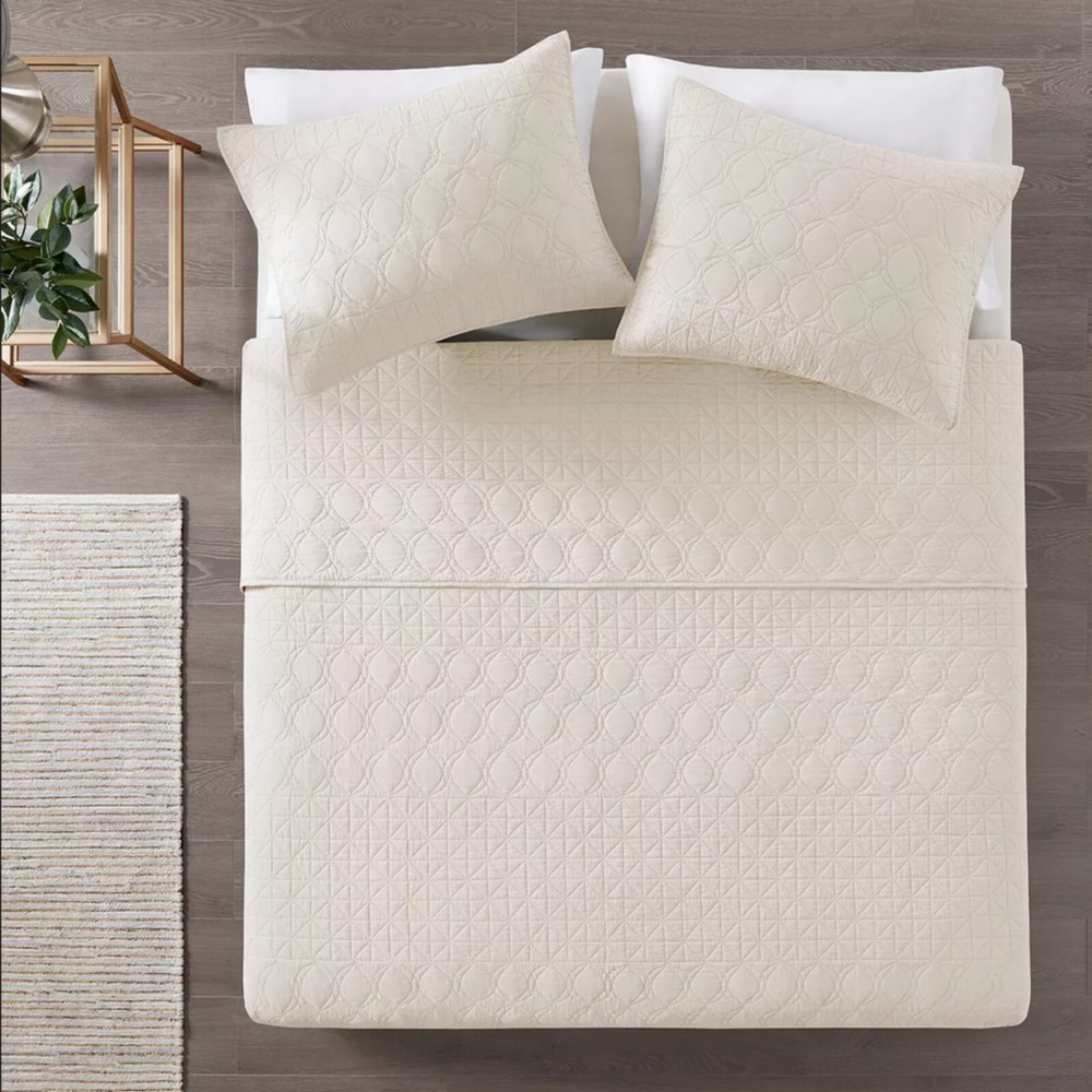 ' Madison Park - Madison Park COVERLET SET Color: IVORY Retail: Description MADISON PARK FULL/QUEEN SIZE 3 PIECE COVERLET SET COLOR IVORY NEW Materials: 100% Polyester Shipping to Hawaii, Puerto Rico and Alaska is not free. We offer a 30 days refund policy only if the items sold are found to be incorrectly described. We are not responsible for pictures showing incorrectly on your monitor. The refunds will only be made if the following return guidelines are followed: The item must be returned in all the original packaging, including cartons, boxes and must not have been cleaned or laundered. All returns must be boxed and packed securely for shipping. Refunds are within 30 days from the day the customer received the original item. We will send you a prepaid label to send the item back. If the item is found to be as described you will receive a refund of your winning bid minus shipping both ways and a 20% restocking fee. We may except returns that do not qualify under ou'