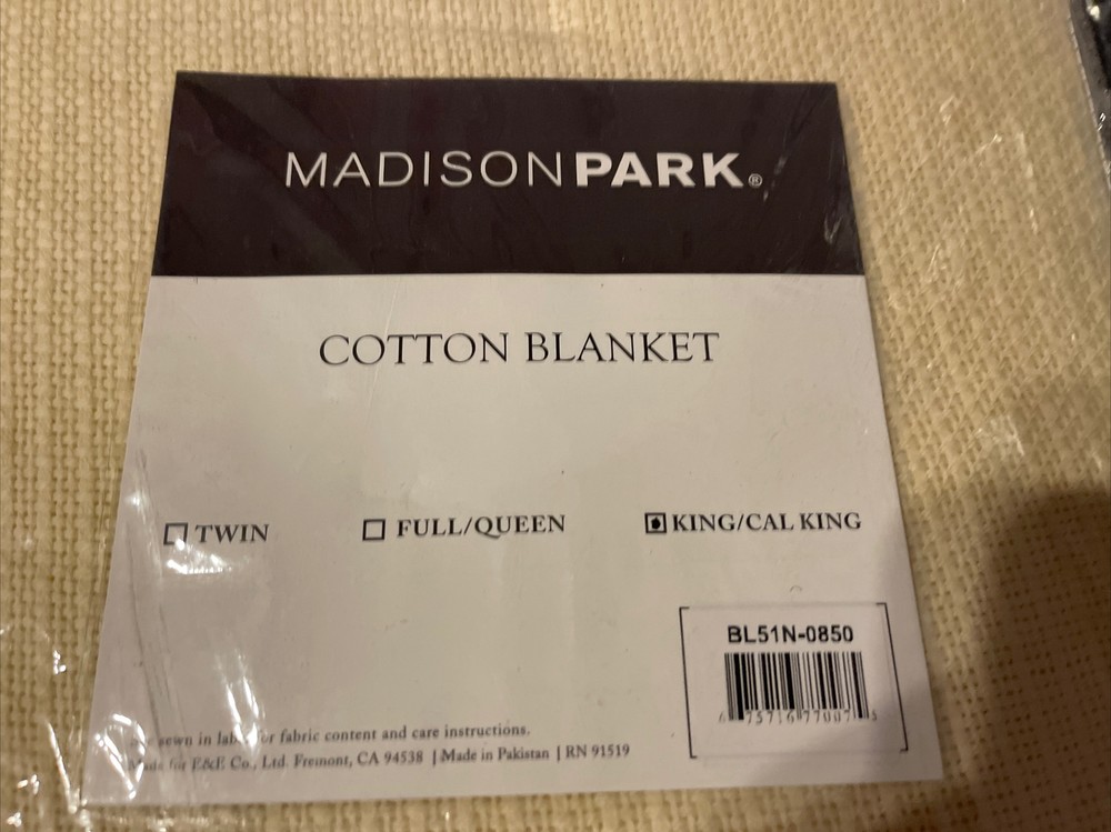 MADISON PARK Freshspun Basketweave Cotton Bed Blanket KING Ivory....