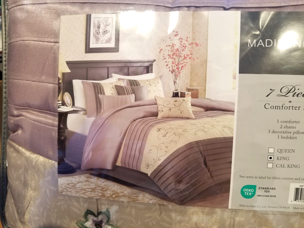 Elevate your bedroom with the Madison PARK King Size 7-Piece Comforter Set, a symphony of elegance and comfort. The set features a radiant purple and gold floral pattern that brings a contemporary touch to any space, perfectly suited for winter season. Crafted with care in China, this collection promises to add a luxurious feel to your sleeping experience. Each piece in the set showcases the exquisite design and attention to detail that the Madison PARK brand is known for. The king-sized comforter set includes everything you need to complete your bedding ensemble, ensuring a coordinated and stylish look. Make a statement with this captivating set that combines contemporary style with cozy comfort.