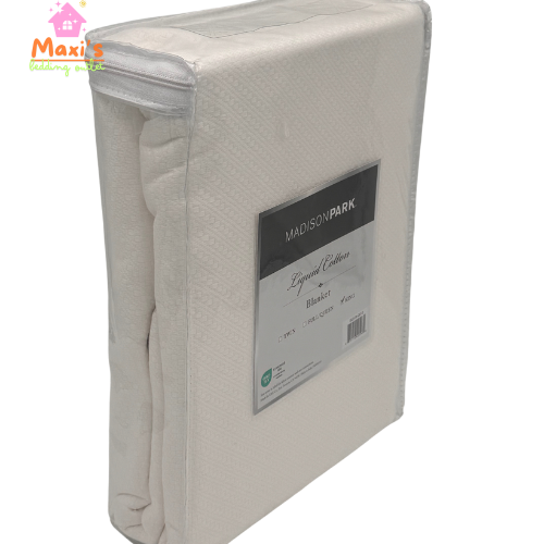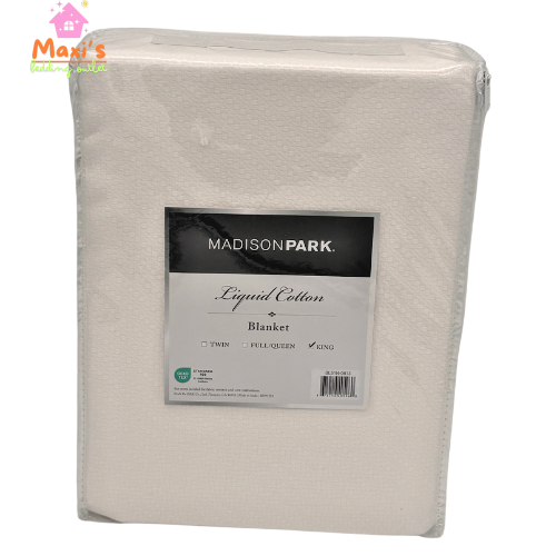 MADISON PARK Liquid Cotton Blanket Size: King Color: White This MADISON PARK Liquid Cotton Blanket is an excellent choice for anyone looking for a comfortable and stylish blanket. With its modern, traditional, and contemporary style, it is sure to fit seamlessly into any bedroom decor. The blanket is made of high-quality cotton material and is machine washable for easy maintenance. This blanket is designed for adults and comes in a size king, with a solid white pattern. It is perfect for snuggling up on chilly nights and can be a great addition to any bedding collection. Whether you are looking for a cozy blanket for your bed or just a stylish addition to your home, this MADISON PARK Liquid Cotton Blanket is an excellent choice. ** At Maxi’s Bedding Outlet, we professionally package each order to reduce the size and weight of the package, optimizing shipping costs. This adjustment ensures that the product arrives in perfect condition while allowing for more economical shipping rates.** If you have any questions about the packaging or shipping process, please feel free to contact us before making a purchase.