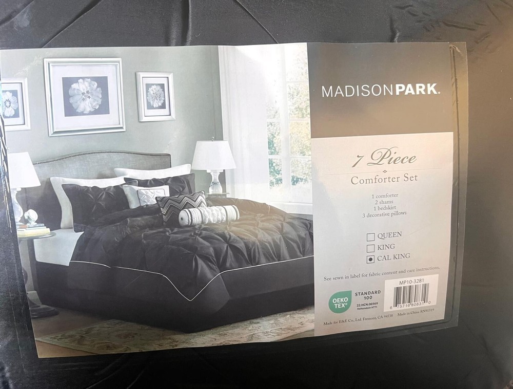 MADISON PARK MP10-3281 RETAIL: $220 Laurel 7 Piece Comforter Set, Cal King - Black, 7PK. The Wilma Comforter Set from Madison Park combines the luxurious comfort of polyester polyoni with a timeless pleated design, making it an elegant addition to any room. 100% Same as the picture! 100% Satisfaction Guarantee. If for any reason you not satisfied with our product, you may return any un-opened merchandise (except Skincare, and Makeup items due to health reasons ) in its original condition, including original packaging and packing slip within 7 days of receipt and you will receive a refund less shipping charges. 15% restocking fee will apply. Shipping cost is non-refundable for undelivered, unclaimed or returned packages, unless we made an error. *********************************************** Payment must be received within seven (7) days of auction close. Unpaid auction wins will be forfeited after seven (7) days and a Non-Payer report will be filed with eBay to recover the closing fees of the auction. If you wish to combine multiple auctions for shipping, please make sure the closing dates from the first auction to the last auction are within seven (7) days Sellers are not responsible for service transit time. Transit times are provided by the carrier, exclude weekends and holidays, and may vary with package origin and destination, particularly during peak periods. ******************************************************************************************* PLEASE CONTACT ME FIRST IF YOU ARE NOT SATISFIED WITH YOUR PURCHASE. I WILL BE HAPPY TO SOLVE ANY PROBLEM. CUSTOMER SATISFACTION IS MY NUMBER ONE PRIORITY. ************************************** PLEASE GIVE US THE OPPORTUNITY TO SERVE YOU !!!