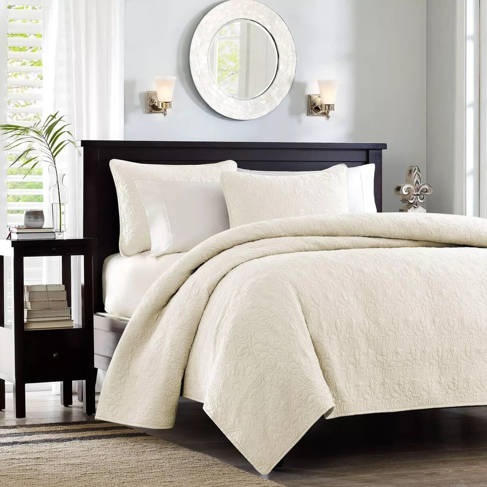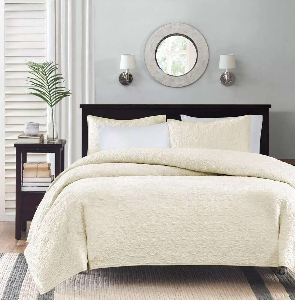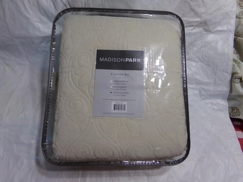 MADISON PARK QUEBEC 3 PIECES KING/CAL KING COVERLET SET COLOR IVORY NEW BRAND- MADISON PARK COLOR-IVORY SIZE-KING/CAL KING NEW Set includes: 1 Coverlet: 104"W x 94"L, 2 King Shams: 20"W x 36"L...