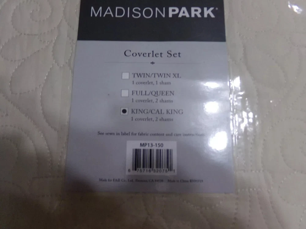 MADISON PARK QUEBEC 3 PIECES KING/CAL KING COVERLET SET COLOR IVORY NEW BRAND- MADISON PARK COLOR-IVORY SIZE-KING/CAL KING NEW Set includes: 1 Coverlet: 104"W x 94"L, 2 King Shams: 20"W x 36"L