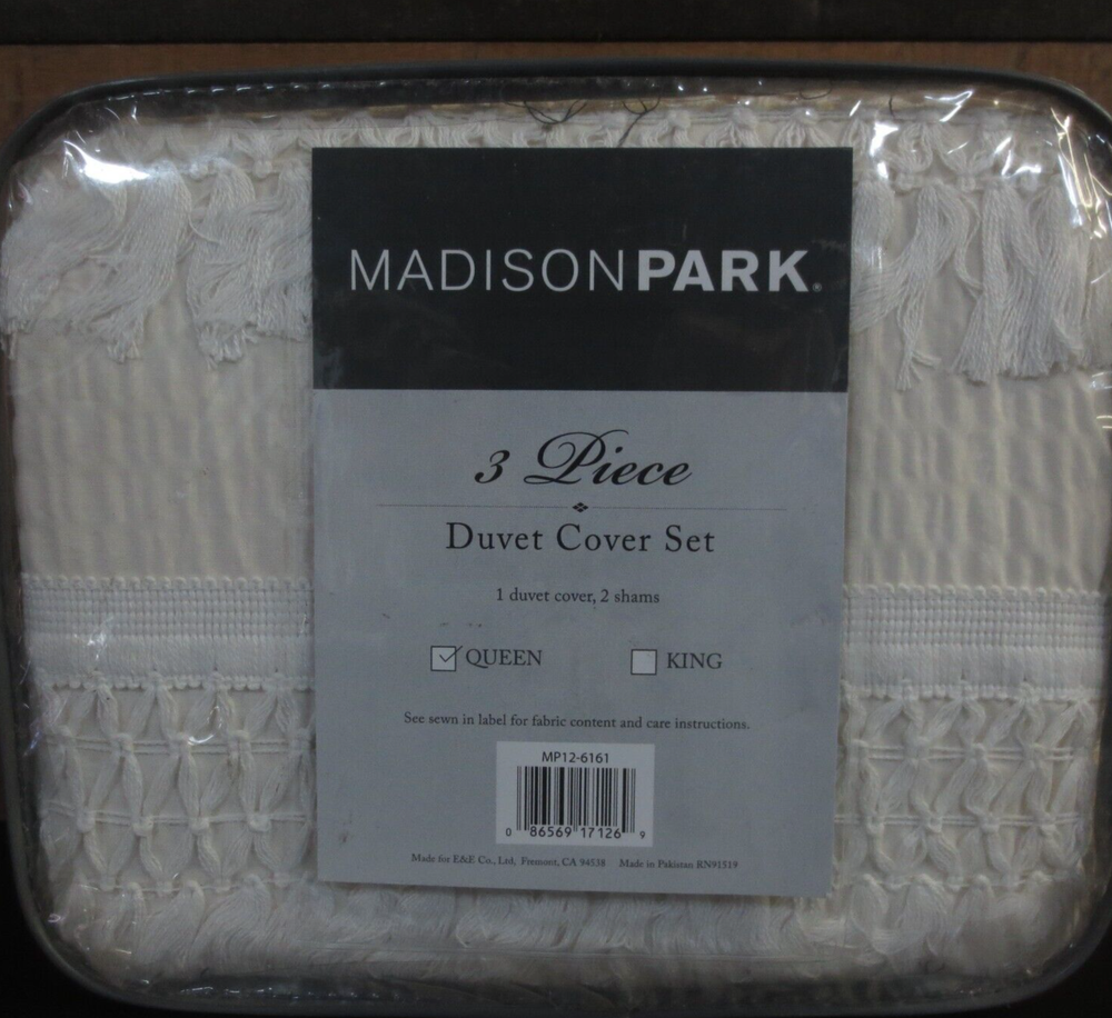 MADISON PARK QUEEN 3 PC DUVET COVER SET SHABBY CHIC COLOR: IVORY QUEEN SIZE 1 DUVET WITH 2 SHAMS NEW WITH TAGS O 15 B 3