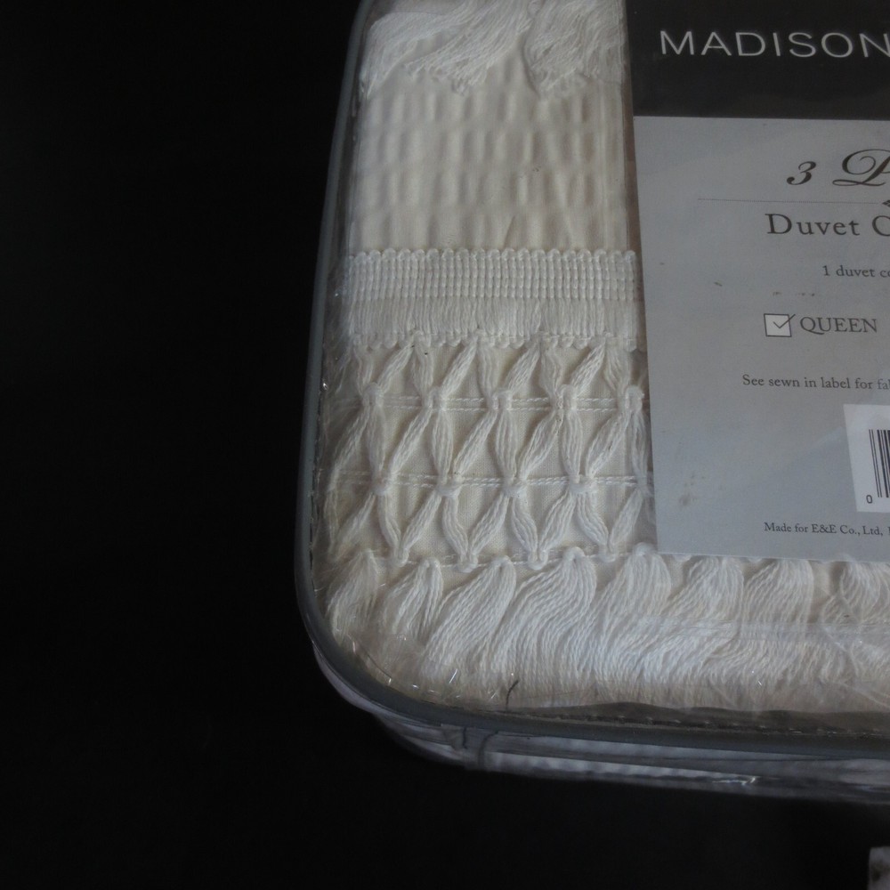 MADISON PARK QUEEN 3 PC DUVET COVER SET SHABBY CHIC COLOR: IVORY QUEEN SIZE 1 DUVET WITH 2 SHAMS NEW WITH TAGS O 15 B 3...