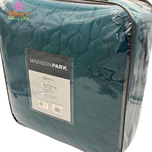 MADISON PARK QUILT SET FULL/QUEEN - 1 QUILT - 2 SHAMS Add a touch of elegance to your bedroom with this MADISON PARK Quilt Set . The set includes three pieces, featuring a beautiful teal color that will complement any decor. The quilts are designed and crafted with great attention to detail, ensuring a high-quality finish. The set is perfect for those looking to add a cozy and comfortable touch to their bedding. The quilts are made with premium materials, ensuring durability and long-lasting use. Whether you're looking to upgrade your bedding or simply add a pop of color to your room, this MADISON PARK Quilt Set is the perfect choice. ** At Maxi’s Bedding Outlet, we professionally package each order to reduce the size and weight of the package, optimizing shipping costs. This adjustment ensures that the product arrives in perfect condition while allowing for more economical shipping rates.** If you have any questions about the packaging or shipping process, please feel free to contact us before making a purchase.
