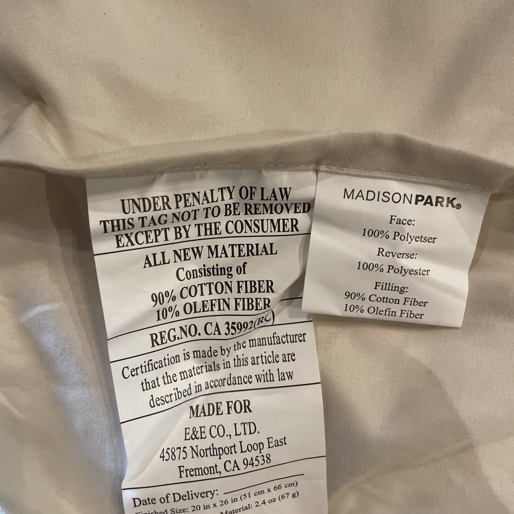 MADISON PARK Quebec Quilted 2 Pc. Pillow Sham Ivory 20.5”x26” #6...