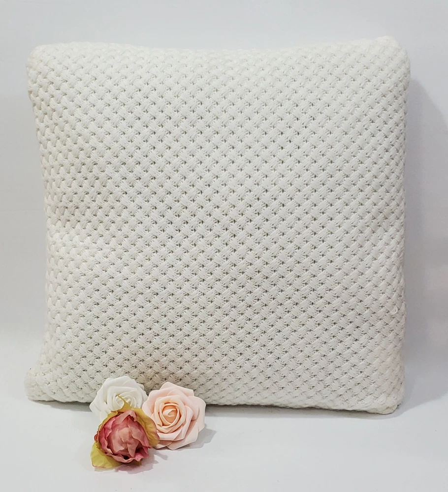 MADISON PARK SIGNATURE Decorative Square Stuffed Pillow 19" x 19" - White/Off-White New No Tags 1 Pillow Flowers not included