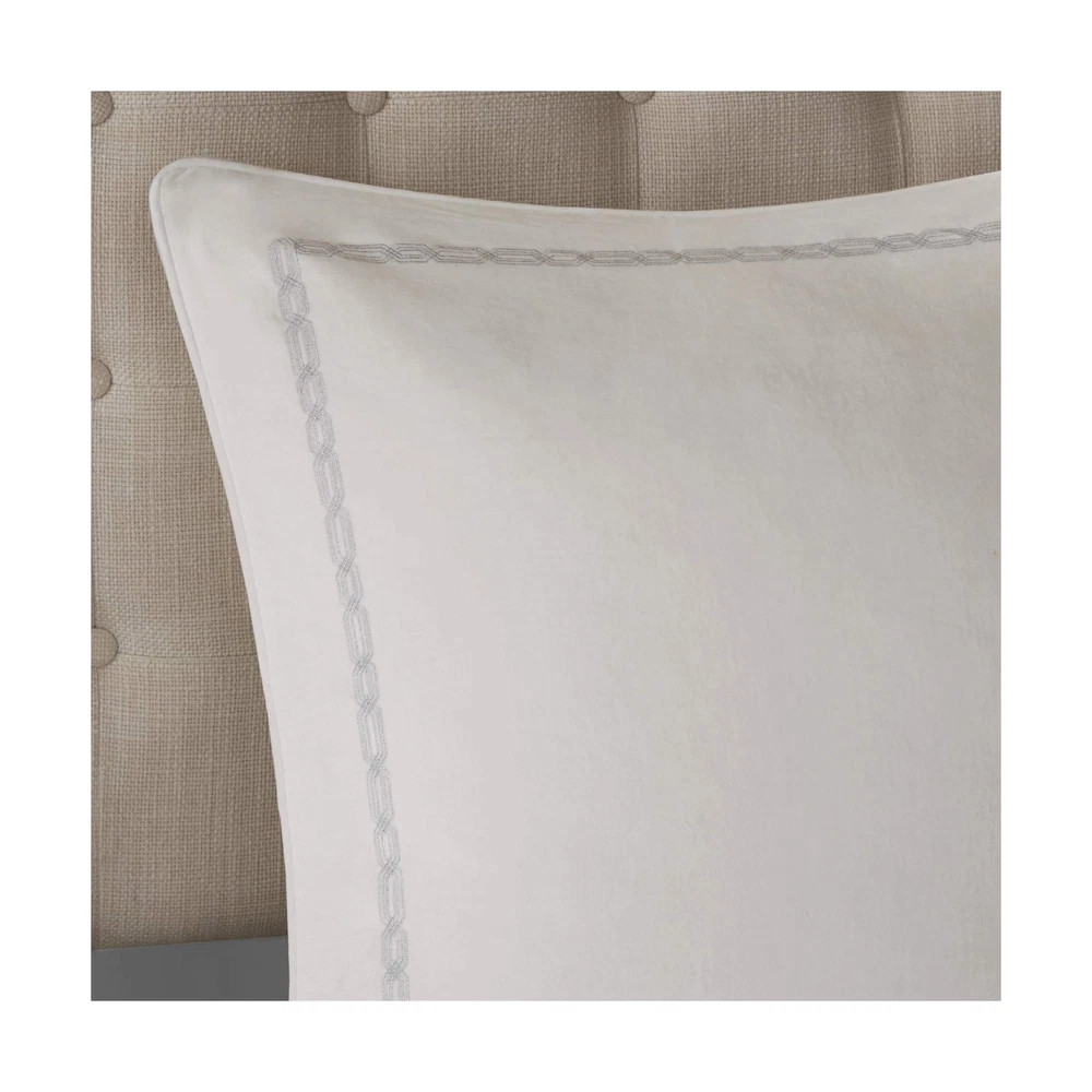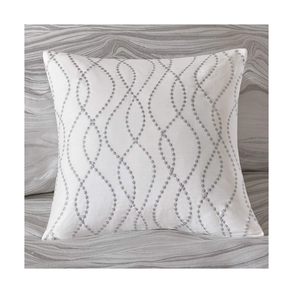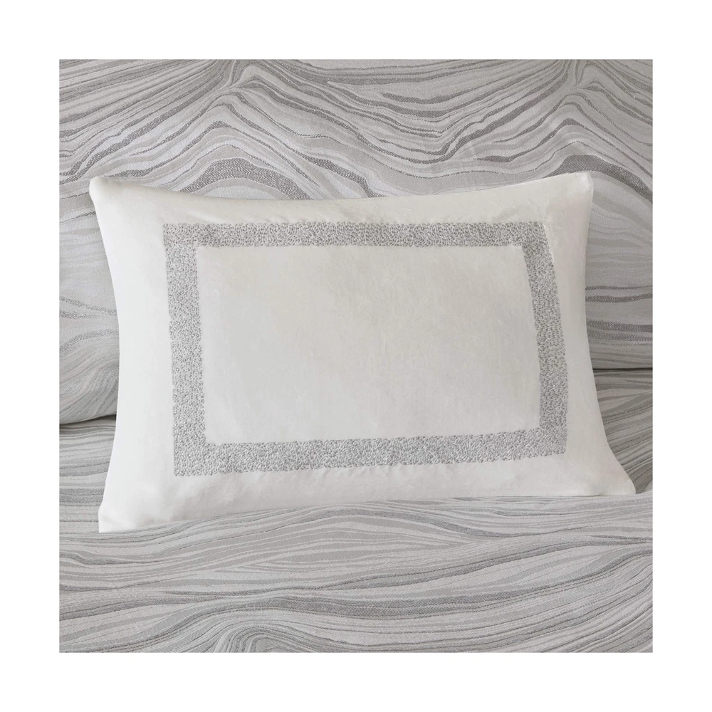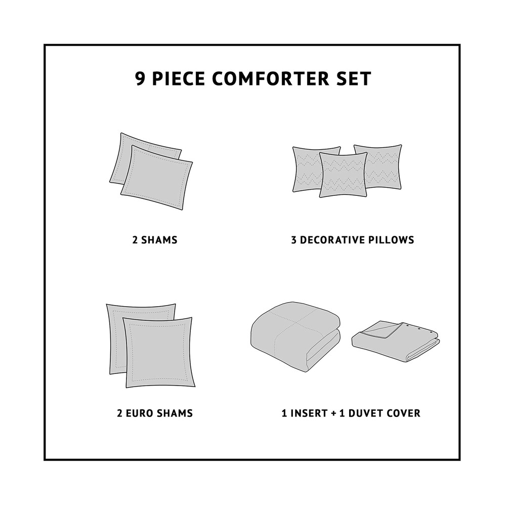 MADISON PARK SIGNATURE Hollywood Glam Cozy Comforter Set - All Season Bedding Combo Filled Insert and Removable Duvet Cover, Shams, Decorative Pillows, Metallic White King(110"x96") 10 Piece Product Details Color: White Size: King(110"x96") Brand: MADISON PARK SIGNATURE MPN: MPS10-311 UPC: 086569897077 EAN: 0086569897077 Size: King(110"x96") Included Components: 1 Comforter, 2 King Shams, 3 Euro Shams, 3 Decorative Pillows Color: White Age Range (Description): Adult Style: Luxurious style Size: King(110"x96") Included Components: 1 Comforter, 2 King Shams, 3 Euro Shams, 3 Decorative Pillows Color: White Age Range (Description): Adult Style: Luxurious style Brand: MADISON PARK SIGNATURE Theme: Modern Pattern: Striped Material: Fabric Fabric Type: 100% Polyester Number of Pieces: 10 Seasons: All Product Care Instructions: Dry Clean Only Product Dimensions: 96 x 110 x 1.5 inches Item Weight: 25.2 pounds Manufacturer: Madison Park Signature Country of Origin: China Item model number: MPS10-311 Is Discontinued By Manufacturer: No Refill: polyester Perfume: Unscented Specifications: certified frustration-free Assembly required: No Batteries required: No 100% Polyester The Madison Park Signature Hollywood Glam Comforter Set offers a modern and elegant update to the bedroom. The oversized and overfilled comforter uses and includes a removable duvet-style insert that is secured by inner ties and a hidden button closure. The comforter comes with a removable duvet cover and the decorative pillows have removable cover with hidden zipper that makes them easy to clean. MEASUREMENT - 1 Duvet Cover - 110(W) inches x 96(L) inches, 1 Comforter - 110(W) inches x 96(L) inches, 2 King Shams - 20(W) inches x 36(L) inches + 2 inch flange each, 3 Euro Shams - 26(W) inches x 26(L) inches each, 3 Decorative Pillows - 20(W) inches x 20(L) inches/ 20(W) inches x 20(L) inches/ 14(W) inches x 20(L) inches Care instructions: Machine wash cold, gentle cycle, and separately. Do not bleach. Tumble dry low, remove promptly. Do not iron. Spot clean pillow. If there is no free movement in the washer or dryer, use large capacity commercial washer/dryer. The Madison Park Signature Hollywood Glam Comforter Set offers a modern and elegant update to the bedroom. This jacquard comforter flaunts an all-over metallic detailing on the luxurious white base, for glamorous allure. Coordinating shams mirror the motif of the comforter and the Euro shams feature a rich cotton velvet face with embroidered details. Three decorative pillows are embellished with unique embroidery and texture, adding dimension and glam to this lavish comforter set. The oversized and overfilled comforter uses and includes a removable duvet-style insert that is secured by inner ties and a hidden button closure. This provides no visible bartacking lines on top of the bed to create a smooth, clean face. Dry clean comforter cover only and machine wash comforter filler. This bedding set is OEKO-TEX certified, meaning it does not contain any harmful substances or chemicals, ensuring quality comfort and wellness. Payment Back to Top We accept Paypal and All Major Credit Cards. Shipping & Handling Back to Top Item will be shipped FREE standard shipping in 1 business day after payment is received. Express Shipping services are available. Tracking number will be provided. Return Policy Back to Top Items can be returned for exchange or full refund within 30 days from the date you receive your merchandise. Please contact us before starting a return request, so we can resolve any issues and provide free returns if needed. Return shipping is the responsibility of buyer unless the return is a result of our mistake (i.e., your receive the wrong item). Contact Us Back to Top If you have any questions please contact us. We will respond within 1 business day or less.