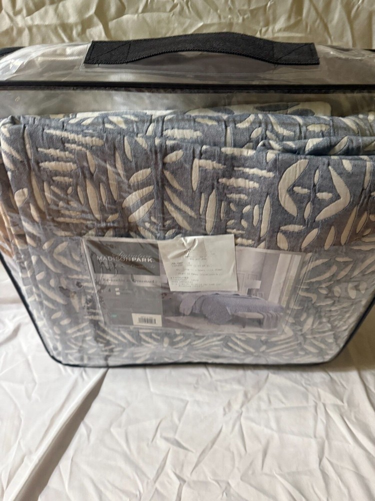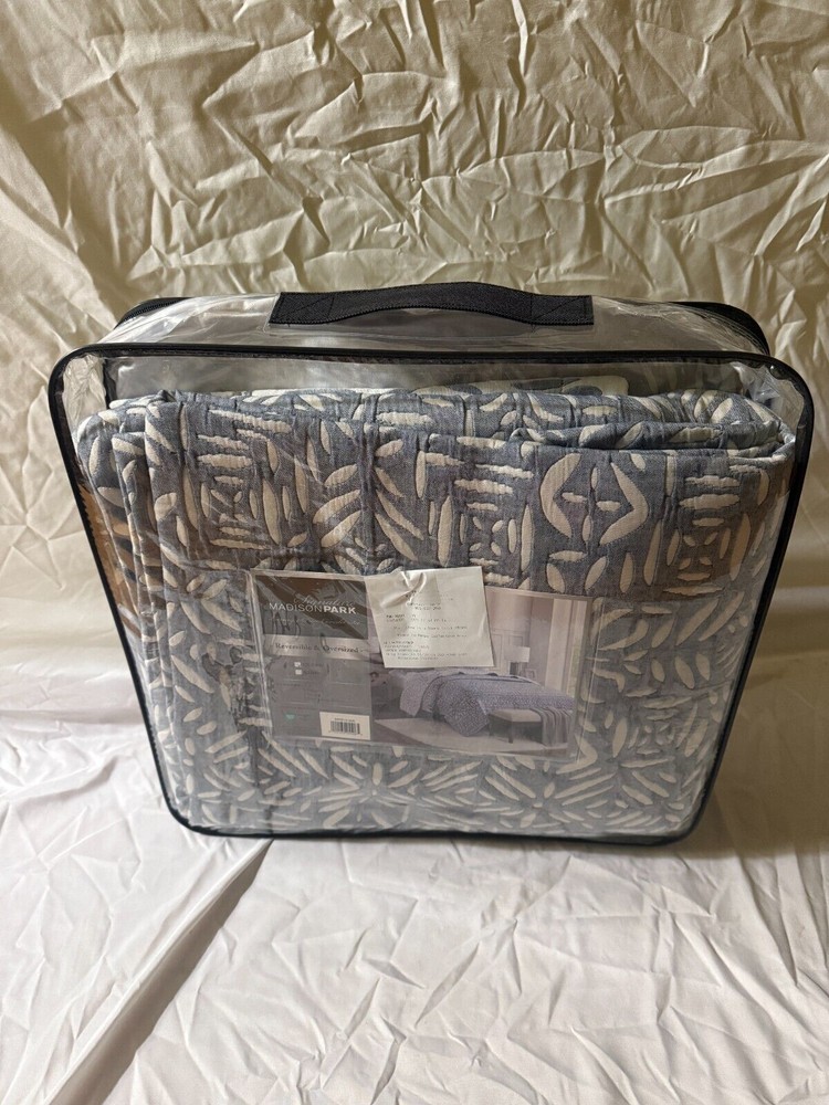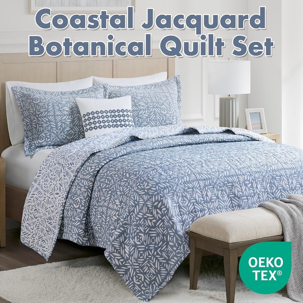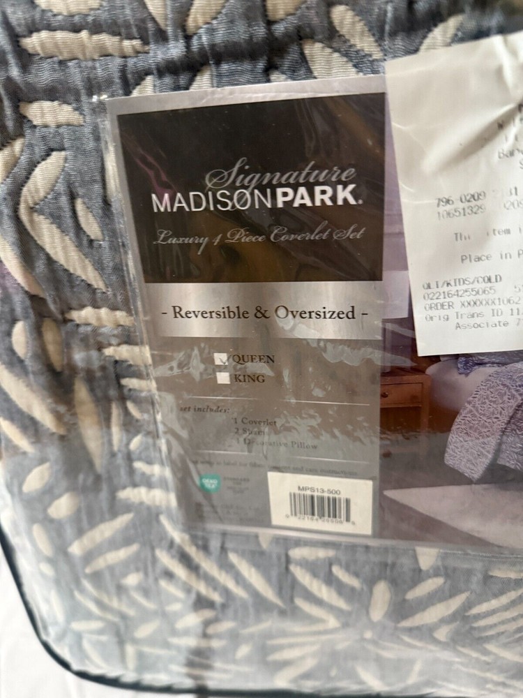RETAIL PRICE $199.00 BEST PRICE GUARANTEED! Brand: Madison Park Size: Queen Color: Blue Material: Microfiber Condition: NEW WITH TAGS Microfiber Cozy Charming Bedding Set - Elevate your bedroom décor with our Harmony coverlet set, featuring a charming botanical reversible matelasse design for a sophisticated visual interest and dimension offering a stylish update to your bedroom décor All Season Comfort - Enhance your bedding comfort with our soft matelasse coverlet set, providing year-round comfort. Lightweight and breathable, it's perfect for staying cozy in the summer or adding an extra layer of warmth in winter Reversible - Our reversible quilt set features a charming botanical motif in two subtle colors scheme on each side, offering a quick bedding refresh with just a flip. OEKO-TEX certified for exceptional quality, comfort, and wellness ensuring cozy comfort Oversized Coverlet Set - 1 Full/Queen Quilt Set: 92"W X 96"L, 2 Standard Shams: 20"W X 26"L +2"D. Includes 1 Decor Throw Pillow 18"W x 18"L DURABLE & EASY CARE: Our matelasse quilt offers durability to withstand daily wear and tear. Simply machine wash cold. Gently and separately. Do not bleach, Tumble dry low. Iron on medium temperature if needed 100% Authentic Product