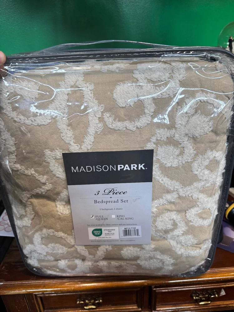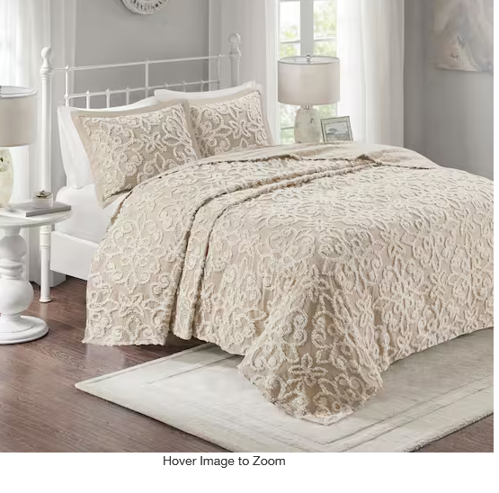 MADISON PARK TUFTED CHENILLE 3 PIECES FULL/QUEEN BEDSPREAD SET COLOR BEIGE NEW BEDSPREAD SET INCLUDES 1 BEDSPREAD 2 SHAMS BRAND- MADISON PARK COLOR-BEIGE SIZE-FULL/QUEEN NEW...