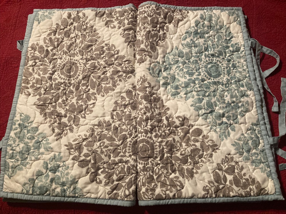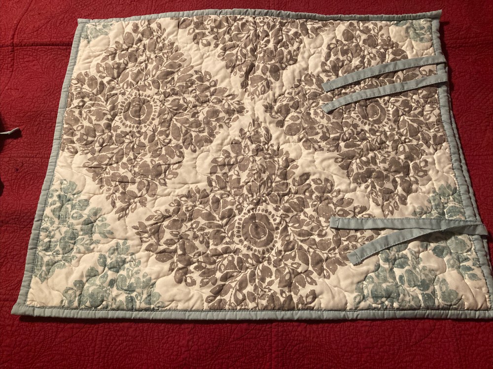 MADISON PARK Turquoise Cyan & Gray Set 2 quilted Pillow Shams with Ties 22 x 28. Feature quilted inside for softness these are in very good condition please see photos for details item will ship USPS first class package