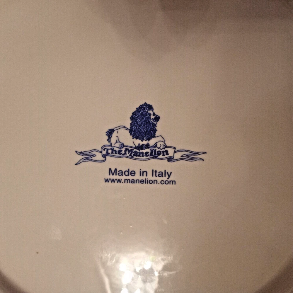 The Mane Lion was established in 1979 , introducing a line of charming, hand-painted serving pieces that enhanced the act of entertaining. Original price $165. This pattern already out of production.