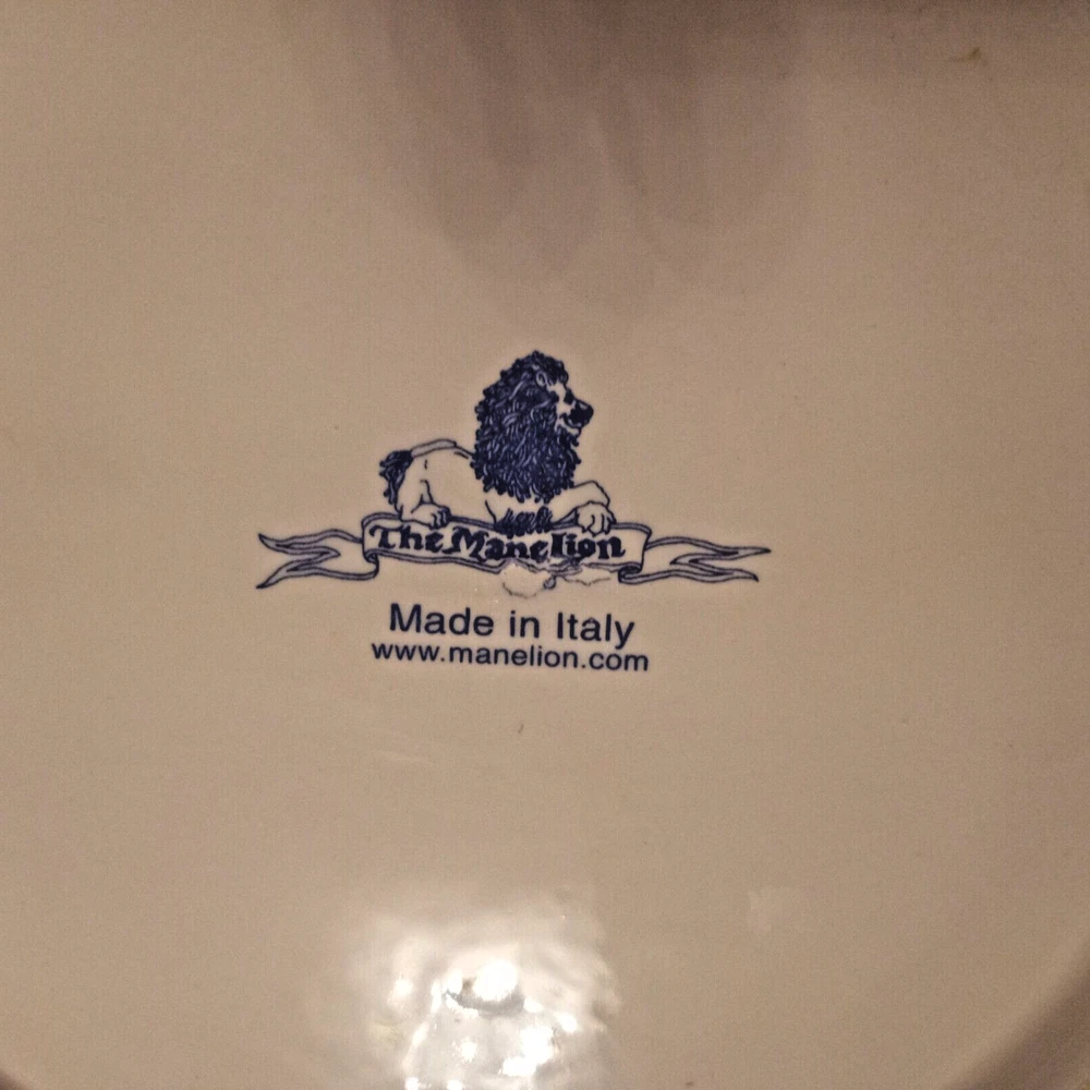 The Mane Lion was established in 1979 , introducing a line of charming, hand-painted serving pieces that enhanced the act of entertaining. 12.5". original price $165. hand painted.This pattern already out of production.