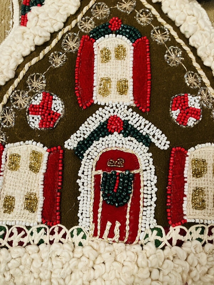 MAX STUDIO SHAPED CHRISTMAS STOCKING GINGERBREAD HOUSE BEADED WOOL BLEND 12 X 14 NWT