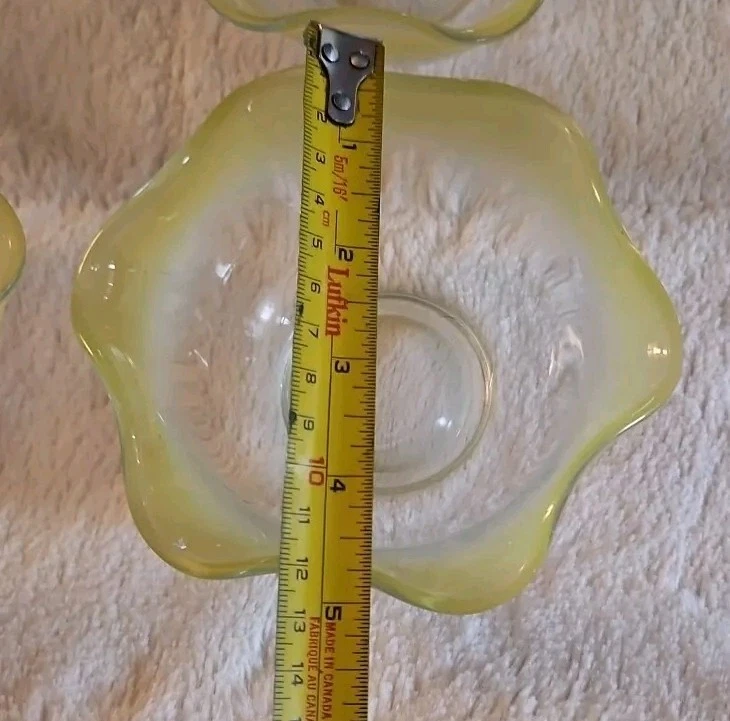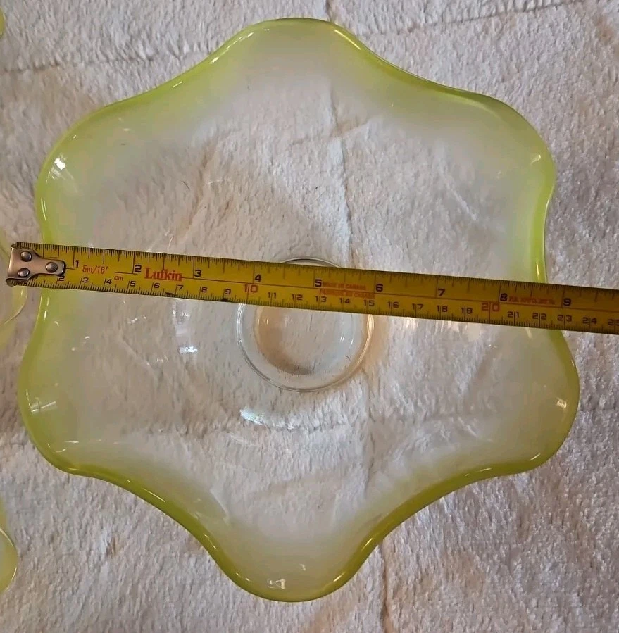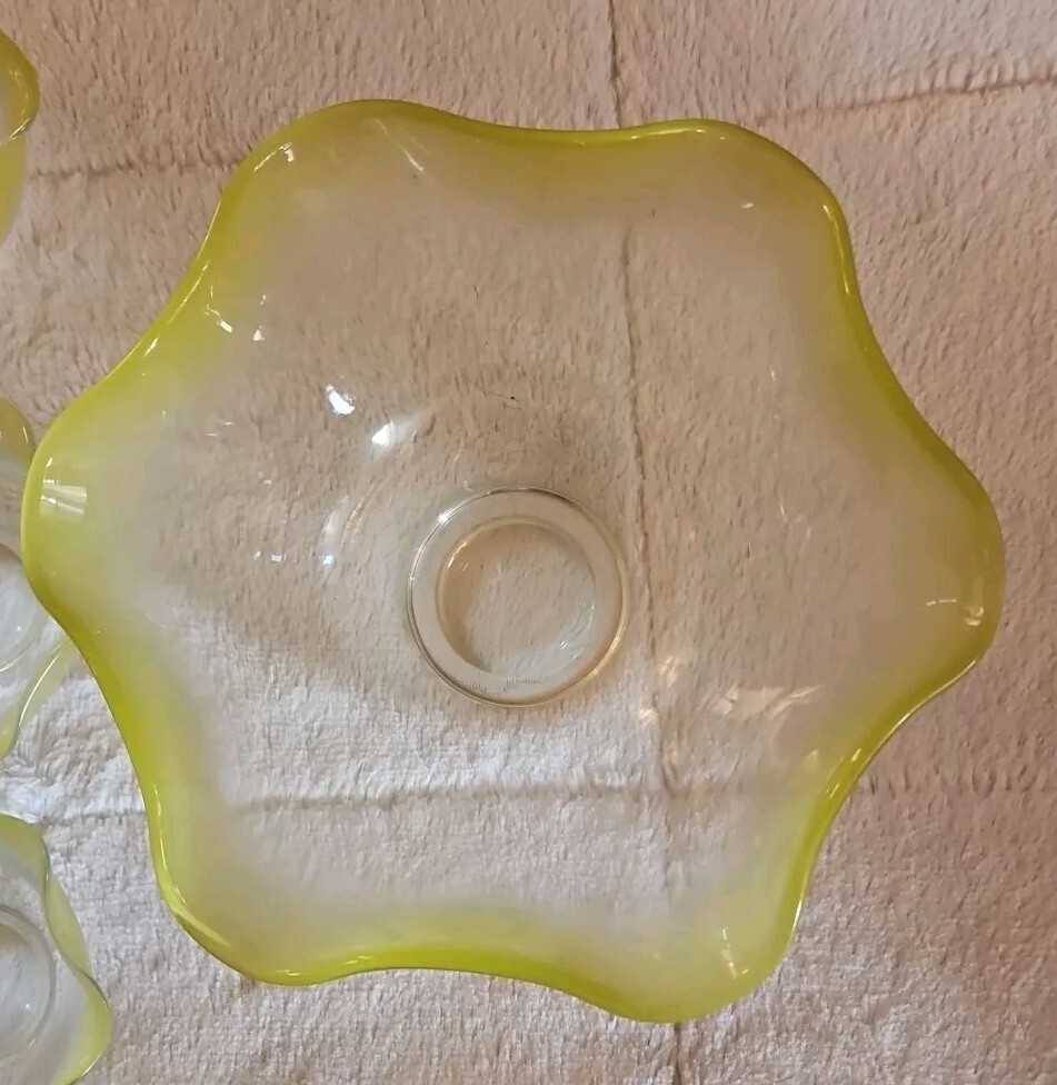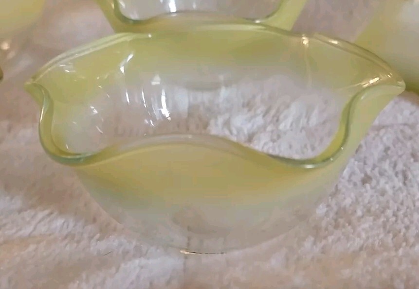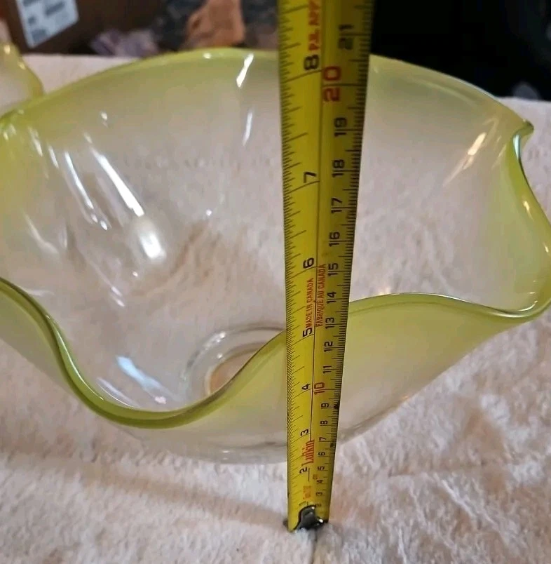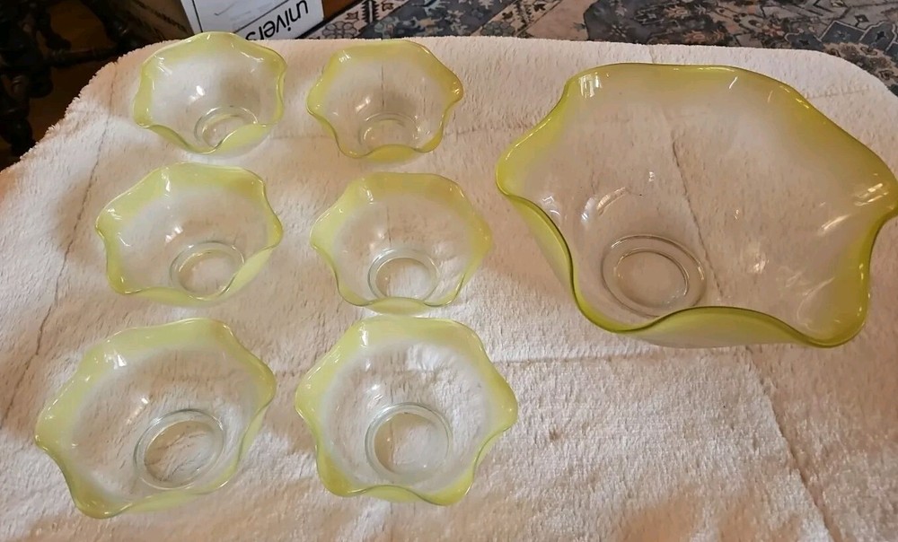This auction is for a previously owned vintage MCM Blendo-Style Fruit Or Dip set. It is Lime green and Clear. It comes with one Large bowl and six (6) smaller Bowls. They are all Wavy. Please see the pictures for dimensions. There are no chips, cracks, or repairs to the piece. Very cool and unique set. Thank you for looking at our auction. We look forward to serving you. Blessings Tammy Romans 6:23