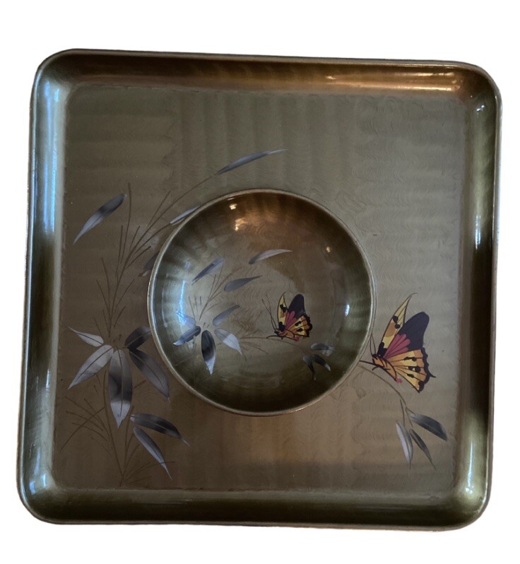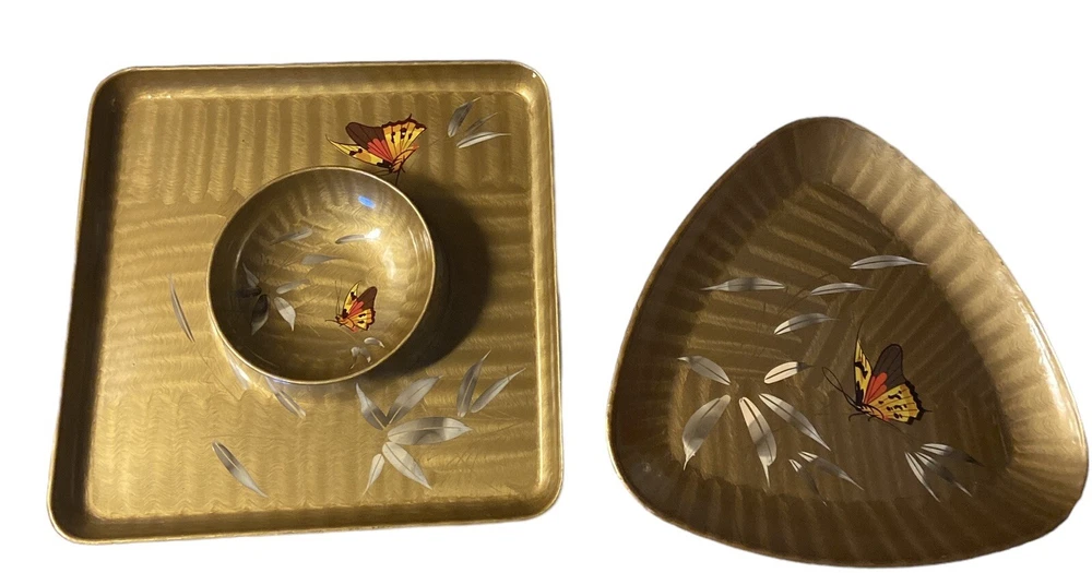 Click here to see all comments below. * Square Platter - Scuff One Corner of Rim 12” x 12” x .75”h 1lb 5oz *Triangular Platter - Scuffs on Rim 11.25”w x 1”h 13oz *Bowl - no visible damage 5.5” Round x 1.5”h 3oz