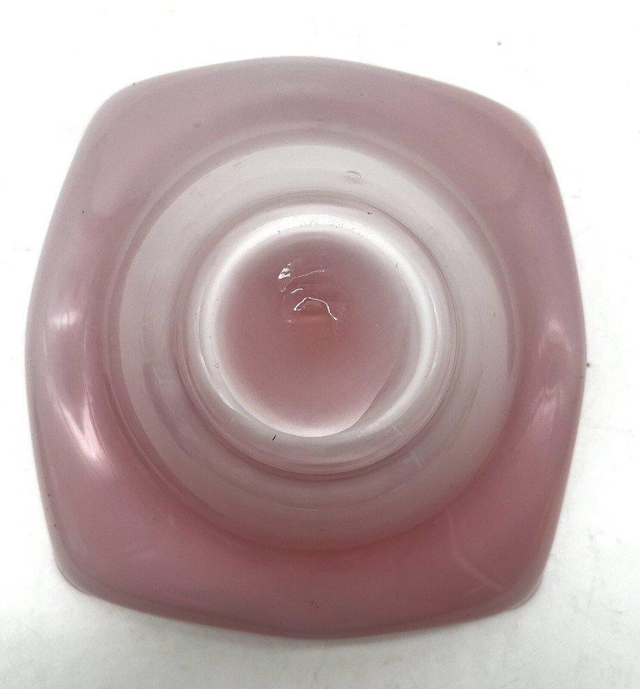 A bright, pretty hand blown art glass bowl. Red with hints of orange. It is square with rolled edges. 5.5” wide. No chips, cracks or repairs. A great piece to use for your holiday candy!!...
