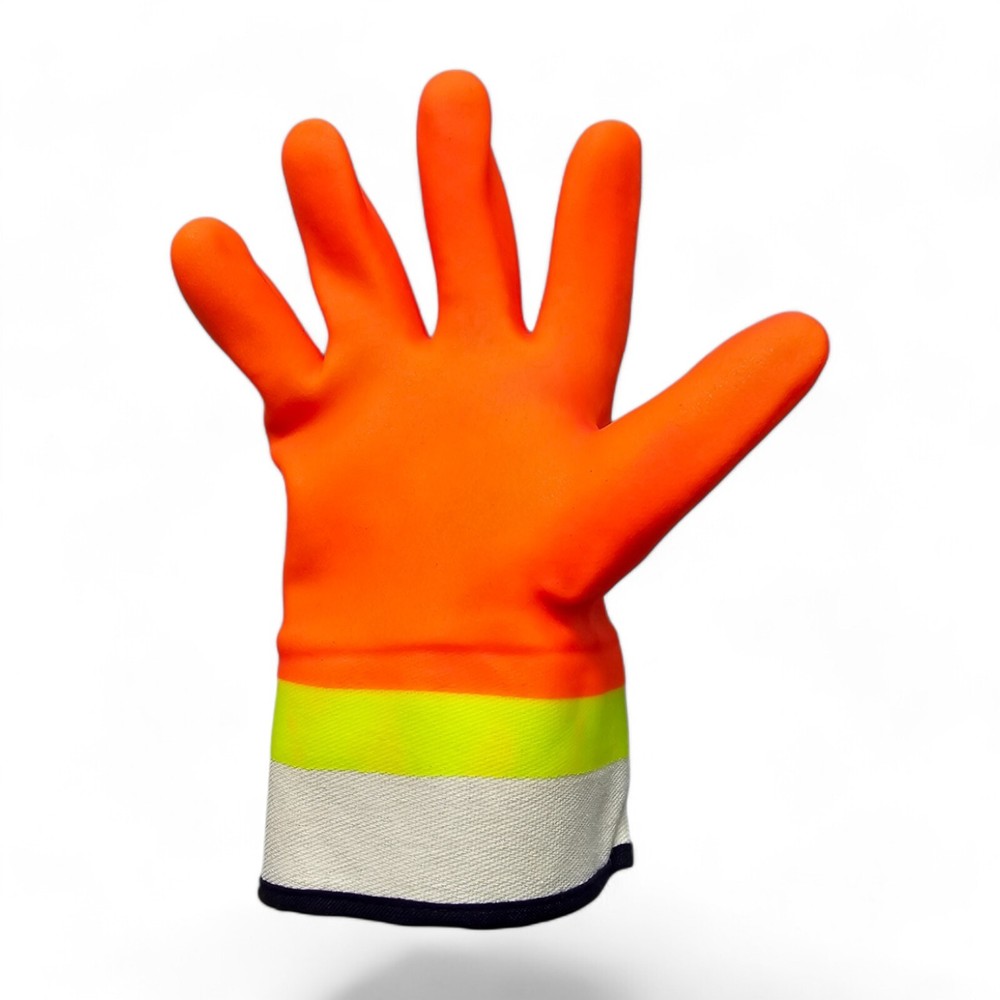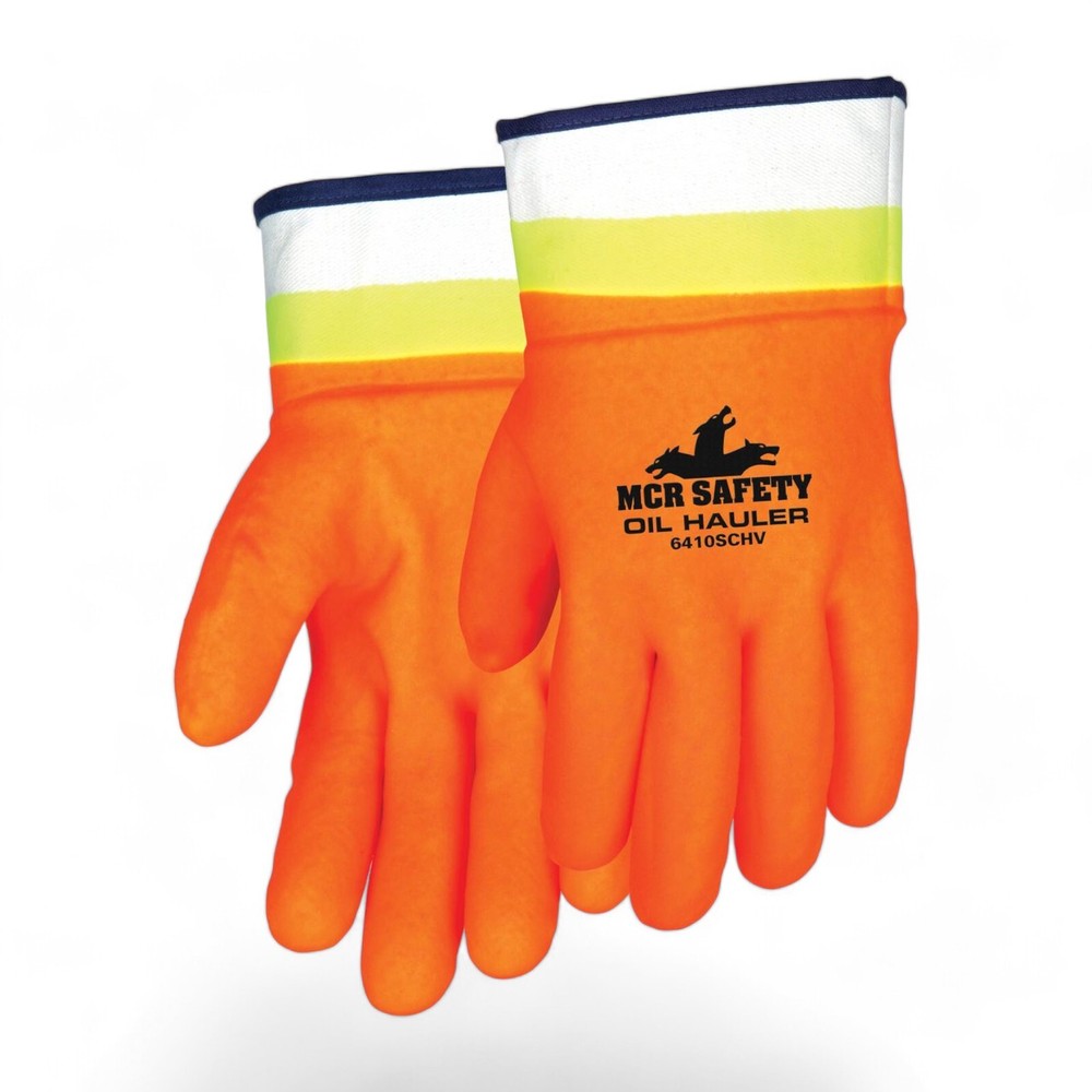 PVC Gloves MCR Oil Hauler Double Dipped Pvc Work Gloves Hi-Visibility Orange, 12 Pairs SKU: 6410SCHV-12 High-Visibility Protection You Can Trust When the job demands visibility and protection, the Oil Hauler Premium High-Visibility PVC Gloves are your go-to choice. These gloves are engineered to keep you safe, comfortable, and visible in challenging work environments, ensuring you can tackle any task with confidence. Why Choose These Gloves? Be Seen, Be Safe: The hi-vis orange over hi-vis lime double-dipped PVC coating makes these gloves impossible to miss, keeping you visible and safe in low-light or high-traffic areas. Durable Double-Coated Protection: The premium double-dipped PVC offers robust protection against oils, chemicals, and other harsh substances, making these gloves ideal for tough jobs. Enhanced Grip: The sandpaper-textured finish improves your grip, even in wet or oily conditions, so you can handle tools and materials with ease. Comfort and Coverage: A soft jersey lining provides comfort for extended wear, while the protective safety cuff extends over your wrist for added coverage and security. Fresh and Clean: Treated with ActiFresh, these gloves resist odors, keeping your hands feeling fresh throughout the workday. Features: High-Visibility Colors: Hi-vis orange over hi-vis lime for maximum visibility Premium Double-Coated PVC: Offers protection against harsh substances Protective Safety Cuff: Extends coverage over your wrist Sandy Textured Finish: Improves grip in challenging conditions Soft Jersey Lining: Comfortable for long-term wear ActiFresh Treatment: Keeps gloves fresh and odor-free Technical Specifications: Hi-Vis: Orange over lime Insulated: Jersey lining for added warmth and comfort Primary Polymer Coating: PVC Cuff Style Material: Canvas for durability Glove Size: Large EN 388: Abrasion: 4 Tear: 1 Cut: 1 Puncture: 1 Perfect For: Oil and Gas Industry Chemical Handling Construction and Demolition General Maintenance Shipping and Receiving Get the Job Done with Confidence With the Oil Hauler Premium High-Visibility PVC Gloves , you’re equipped to handle tough jobs while staying safe, visible, and comfortable. Don’t settle for less—choose gloves that deliver superior protection and performance.