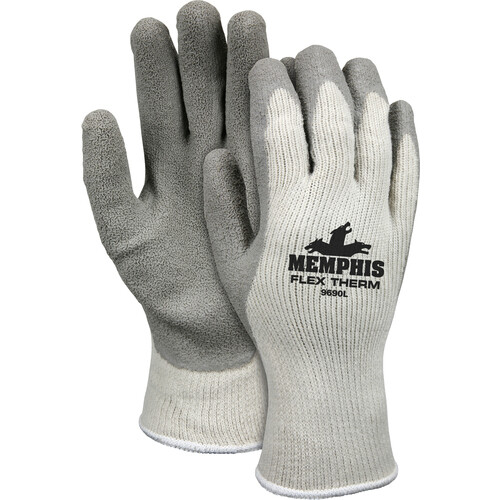 MCR SAFETY PPE FLEX-THERM LATEX DIPPED GLOVES SIZE EXTRA LARGE 1 PAIR ATTRIBUTES Coating Coverage Palm/Fingertips Coating Finish Crinkle Coating Material Latex Color Gray Cuff Type Knit Wrist EN Abrasion Level EN388 Level 2 EN Cut Level EN388 Level 2 EN Puncture Level EN388 Level 1 EN Tear Level EN388 Level 4 Finger Type Standard Finish Textured Gauge 10 Gauge Lining Cotton/Polyester Material Cotton/Polyester/Acrylic Size X-Large