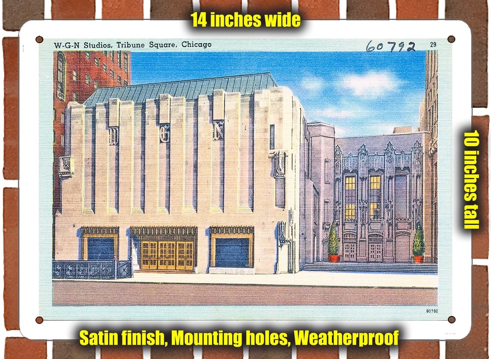 Made in the USA of sturdy and durable aluminum, this METAL SIGN of a vintage 1940s postcard is weatherproof and suitable for both indoors and outdoors. The measurements are shown on the image (the long edge is 14 inches and short edge is 10 inches) and the sign is shown on a brick wall (the brick is not part of the sign). NOTE: Some of these old postcard scans are crooked, yellowed, have handwriting, numbers, ink stamps, etc., but before we print them on a metal sign, we clean up the scan and try to make it look like the day it was first printed (these postcards were all originally black and white photographs that were hand-tinted in the 1940s by artists before being made into a linen postcard, so there will always be some weird colors and a linen texture). Each sign is handmade to your order in Minnesota and shipped FREE next business day. Made of sturdy aluminum with a beautiful satin, non-glare finish. Outdoor durable and weatherproof. Will not fade in the sun. Will not rust. Smooth rounded corners with four corner mounting holes. FREE First Class shipping IN A CRUSH-PROOF BOX (not an envelope). You can upgrade to faster Priority Mail for $7.95. ABOUT OUR SIGNS: Our individually handcrafted signs are perfect for kitchens, bathrooms, doors, garages, man caves, cubicle walls, back yards, pool areas, indoors or outdoors. We have vintage ads, No Parking signs for just about every vehicle type, old political posters, funny sayings -- we have nearly 40,000 different designs available, so the best strategy to find one that you like is to search our store for a keyword. W e're sure you can find something for everyone!