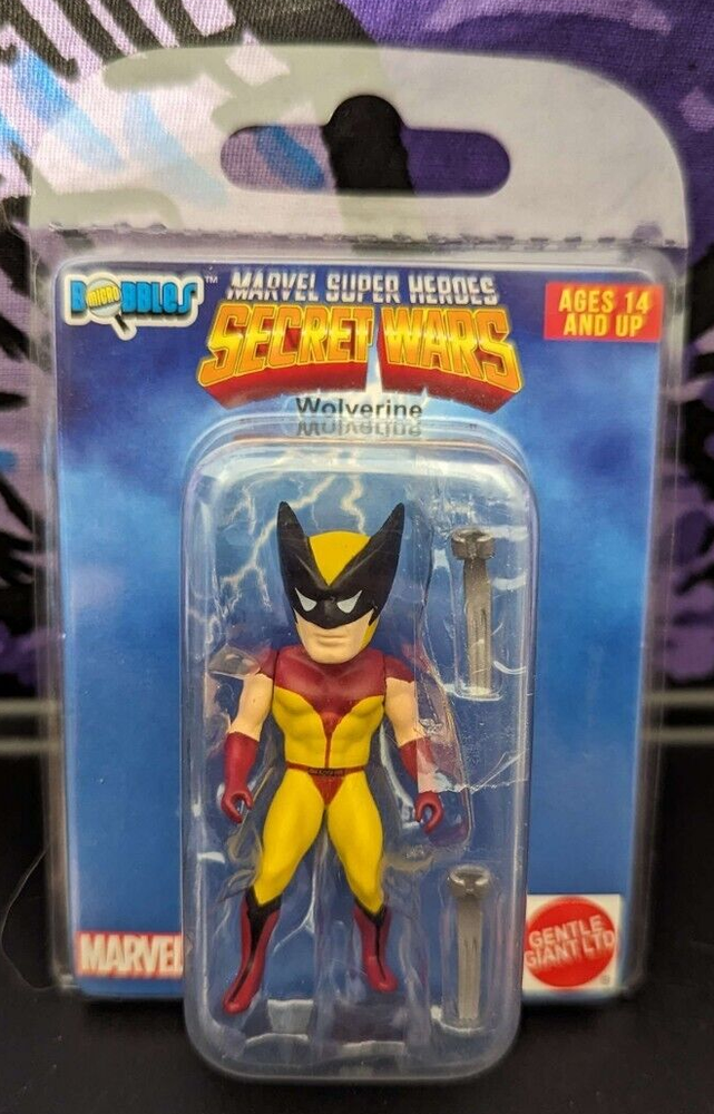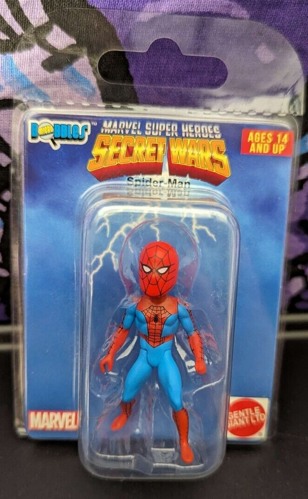 This Micro Bobbles set features four iconic Marvel characters from the Secret Wars series: Wolverine, Deadpool, Black Suit Spider-Man, and Spider-Man. These 2-inch action figures are highly detailed and come unopened in their original packaging. Created by Gentle Giant in 2015, this set is a must-have for any collector or fan of the Marvel Universe.