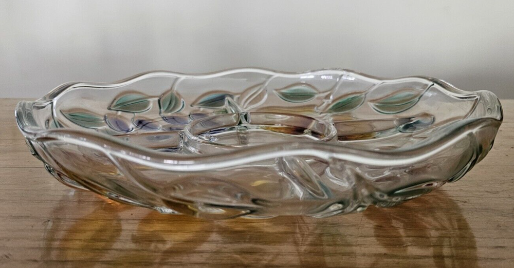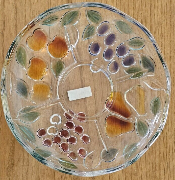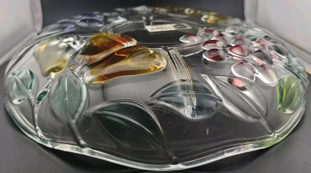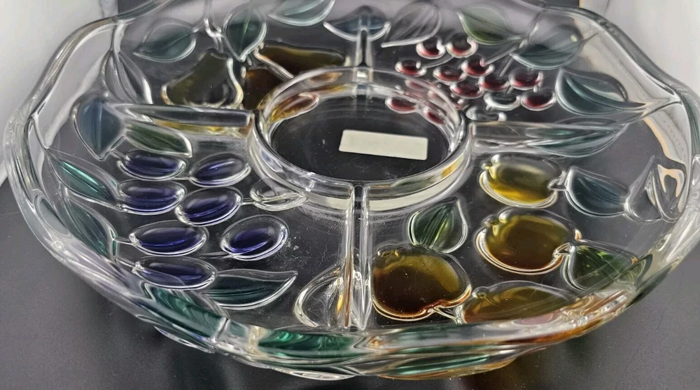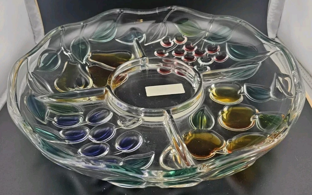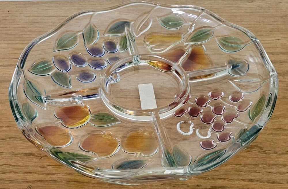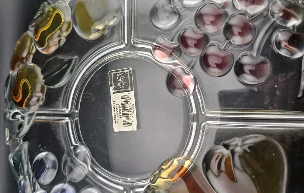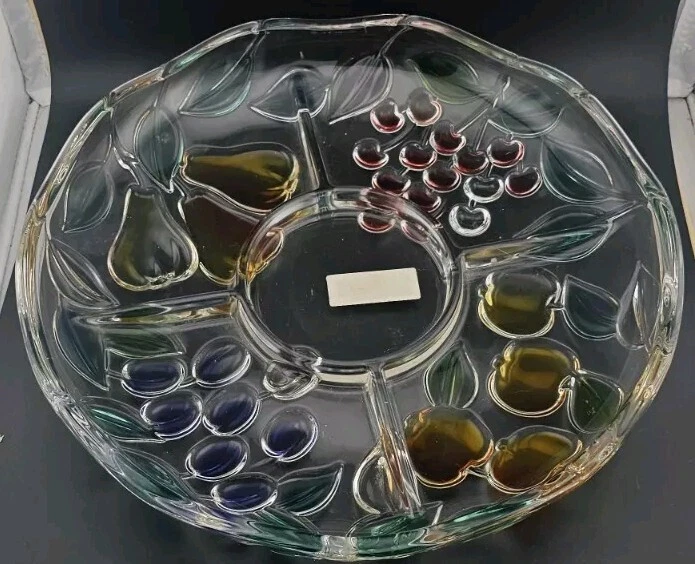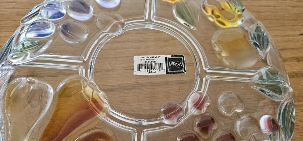 ~ This is a MIKASA glass serving platter ~ ~ The plate measures 12 1/2 inches diameter & 2 inches depth ~ ~ a beautiful painted finish and a Harvest Fruit pattern ~ ~ Crafted in Germany ~ ~ Features a Chip & Dip Fruit Plate design ~ (I believe it is missing a matching bowl but any small bowl can work) There is a very small spot on the grape section that the paint is missing - where the plate sits on the counter. I took some very close up pictures that make it seem bigger than it is. No other issues that I could find. ~ Very Good Pre-owned Condition ~ ~ Shows normal signs of use and age ~ ~ please see photos for details ~ Pictures are part of the description. Please note that colors in photos can vary depending on the lighting and the flash. I do my best to provide accurate information on all of my listings but the occasional thing might get missed. If for any reason you are not satisfied with your purchase please contact me prior to leaving feedback so we can resolve any issues. Feedback will be left for you once I know your item has reached you. Thank you for your feedback in return. Please check out my other items for sale. New items are listed frequently. Combined shipping is available but you must contact me for a combined invoice before paying. There is also a link in your cart that says "Ask Seller for Combined Shipping". Please click on this link and it will advise me to send you a new invoice with the reduced shipping rates. Please feel free to contact me should you have any questions. Preferred Shipping is through USPS Priority Mail. Shipping cost is based on the weight, size of package and buyer location. Items are shipped within 2 business days after payment is received. I try to use recycled materials whenever I can for shipping purposes. Priority Shipping includes shipping insurance. However, if your item does arrive damaged or broken, please contact me and we will work through the insurance claim process together. Please be sure to include clear pictures of the damage. Evidence of damage is required to make an insurance claim.