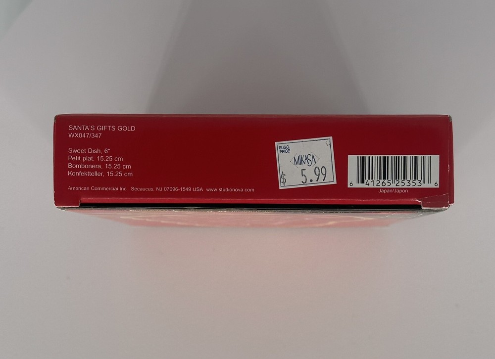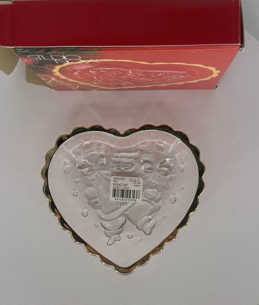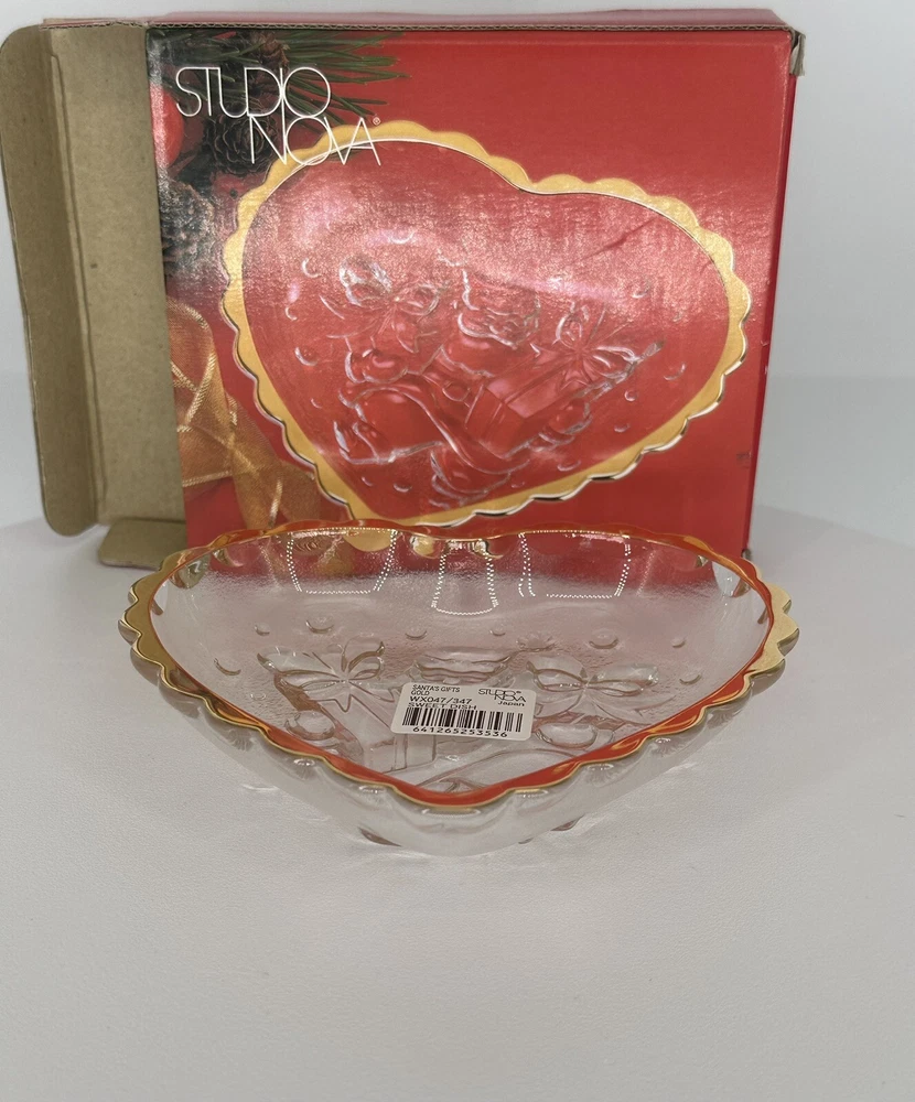 MIKASA STUDIO NOVA SANTA'S GIFTS 6" Heart Shaped Sweet Dish W/Gold Trim Holiday Dish is brand new in box with all original stickers and unused. 6-inch plate. Thank you for stopping by! My name is Pam with Pam's Retro Emporium LLC. I do my best to list everything as accurately as possible with attention to detail. If you do not feel the item was described accurately or there are any issues, please let me know before leaving a review. I will do what I can to make it right! All Items come from a smoke free home. **Any props or displays used in photos are not included! **Sometimes matching items or items from a set will be listed separately so take a look before purchasing. As of right now I am not accepting returns, so please look at listing carefully before bidding or purchasing. I list new items daily, so please take a look at my other items for sale. Thanks so much for looking! Happy shopping!