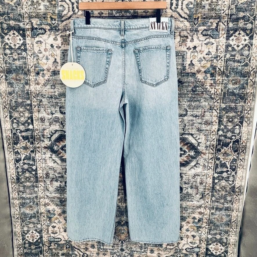 Features: • Wide Leg, Distressed, Sliced Hem • All Seasons • Distressed • Made in USA • Machine Wash Size: Womens 29 Measurements: Waist 16.5 in / 42 cm Hips 18 in / 46 cm Rise 12 in / 30 cm Inseam 30.25 in / 77 cm Leg Opening 10 in / 25 cm Condition: New With Tags New With Tags. Please review photos. Message with questions. Thanks!
