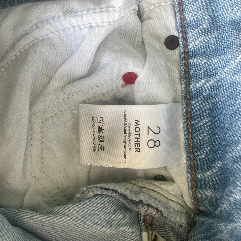 Experience the ultimate denim comfort with these high-rise ankle jeans from Mother's Snack collection. The pleated accents and 5-pocket design add a touch of sophistication to the solid blue color, making them perfect for any occasion. The button closure and relaxed fit ensure a flattering silhouette, while the 100% cotton material provides a medium wash denim that is ideal for machine washing. These jeans have a waist size of 28 inches, an inseam of 30.5 inches, and are designed for women who love to have fun. The Snack collection's THE PLEATED FUN DIP PUDDLE model is perfect for both summer and winter, and the denim fabric gives you the freedom to create your own style. Get ready to snack on fashion with these jeans from Mother, made in the United States for your wardrobe pleasure.