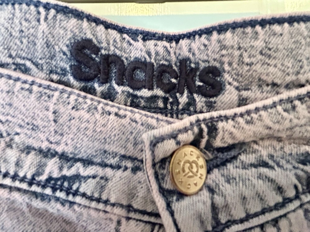 Casual denim collection with these stylish and comfortable MOTHER SNACKS! The Pleated Fun Dip Puddle Just a Nibble jeans. These roomy pleated jeans come in a classic blue color with a unique solid pattern, making them a perfect addition to your wardrobe. The jeans feature a button fly closure, five-pocket design, and belt loops, ensuring convenience and practicality. Made of 100% cotton denim fabric, these high-rise jeans provide a relaxed fit for all-day comfort. The pleated accents and logo add a touch of fun to the overall design. These MOTHER SNACKS! jeans are machine washable, making them easy to care for. Ideal for any season, these jeans will keep you looking stylish all year round.