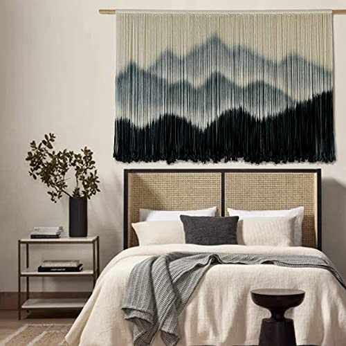 Return Policy Fast Delivery Trusted seller Macrame Wall Hanging Mountain Dip-Dyed Macrame Wall Decor Large Modern Fiber Art Boho Wall Decor 59" Wx35" L Product Description Macrame wall hanging is one of a kind is dip dyed fiber art decor tapestry, made of natural macrame cord cotton. It is designed with mountain and natural patterns resembling a beautiful outdoor natural landscape. Occasion: above bed headboard, living room wall, gallery wall, entrance hall wall, etc. The macrame craftsmanship art like this will suit perfectly a minimalist living room, bohemian bedroom, and warm mid-century office. Dimensions: 59"L across X 35" W-(approximate length from the top of the stick to the tip).-Large macrame wall decor Mounting: The Macrame wall decor every pieces include high-quality mounting hardware for easy and secure installation. 1. All the large macrame wall hangings are handmade paintings. Each piece is unique and maybe a little different.2.Due to the macrame wall decor being packed in a box during shipping, the macrame is bent when it is hung up. You can iron it with a steam iron which will help it straighten. You can also comb macrame with the comb, the macrame will straighten itself after one or two weeks. Shipping Returns Payment Shipping Shipping is FREE to all addresses other than APO/PO boxes in the lower 48 states. All our stock ships from US-based warehouses. Shipped via USPS or UPS (depending on location and package weight) Unless stated otherwise, all orders will ship within 24-72 hours of your payment being processed. Check our feedback to see the great reviews of FAST shipping we offer. Returns Seller does not accept returns Payment We currently accept payment via eBay managed payments only. Once payment is cleared, we will dispatch your shipment within 1-3 business days. Please refer to the "Shipping" tab for more information regarding shipping speed to your destination.